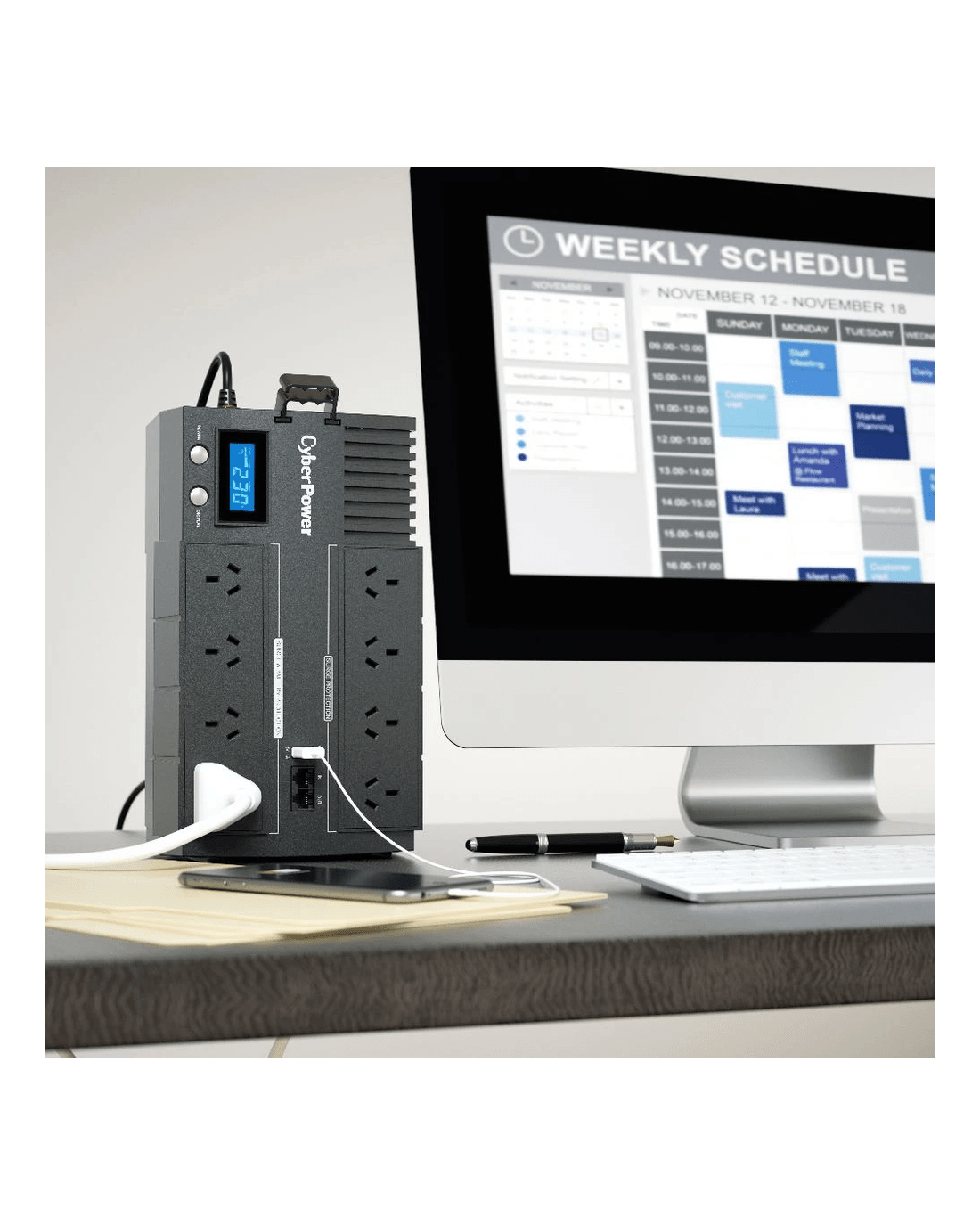 The CyberPower Line Interactive UPS offers uninterrupted power supply (UPS) to computer systems within your home or small office workspace. It has a capacity of 1200 VA or 720 Watts, and a multi-function LCD screen so you can see power and battery statuses easily. Using the PowerPanel management software, you can set the system to safely shut down and autosave files in the event of a power outage.