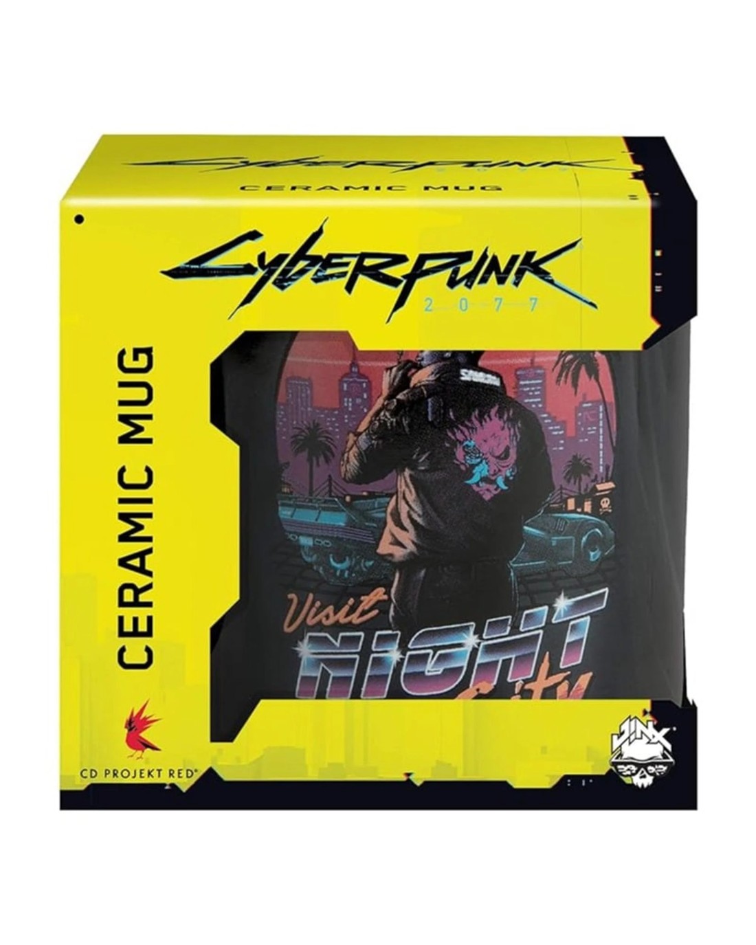 FOR CYBERPUNK 2077 VIDEO GAME FANS: Black mug with Visit Night City design on one side with Cyberpunk 2077 logo on the other side; hidden Samurai design at the inside/bottom of the cupPERFECT BREW: Great for a drink in your own kitchen at home or hanging out at work; The mug is made with high-quality ceramic construction and holds 11 ouncesGREAT GIFT IDEA: Mug comes in a cut-away package, ideal for collectors and as gifts for friends, family and other video game fansEASY CARE: Microwave and dishwasher safe; Ages 15 and upAUTHENTIC CYBERPUNK 2077 DRINKWARE: Officially licensed by CD PROJEKT RED; designed and created by JINXItem Specifics
