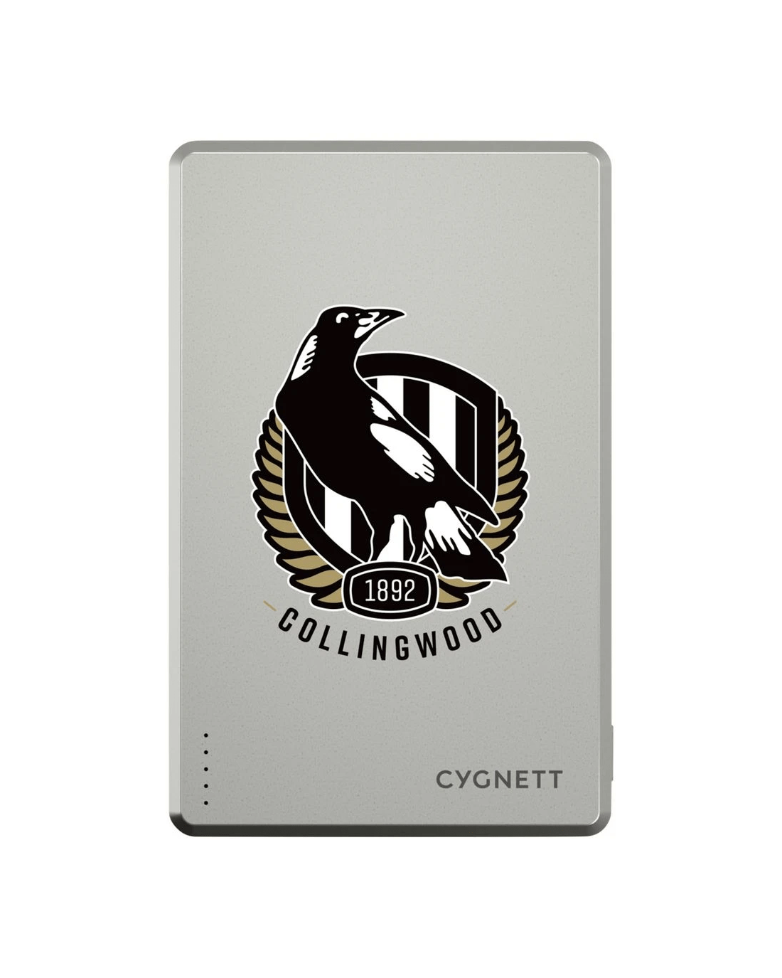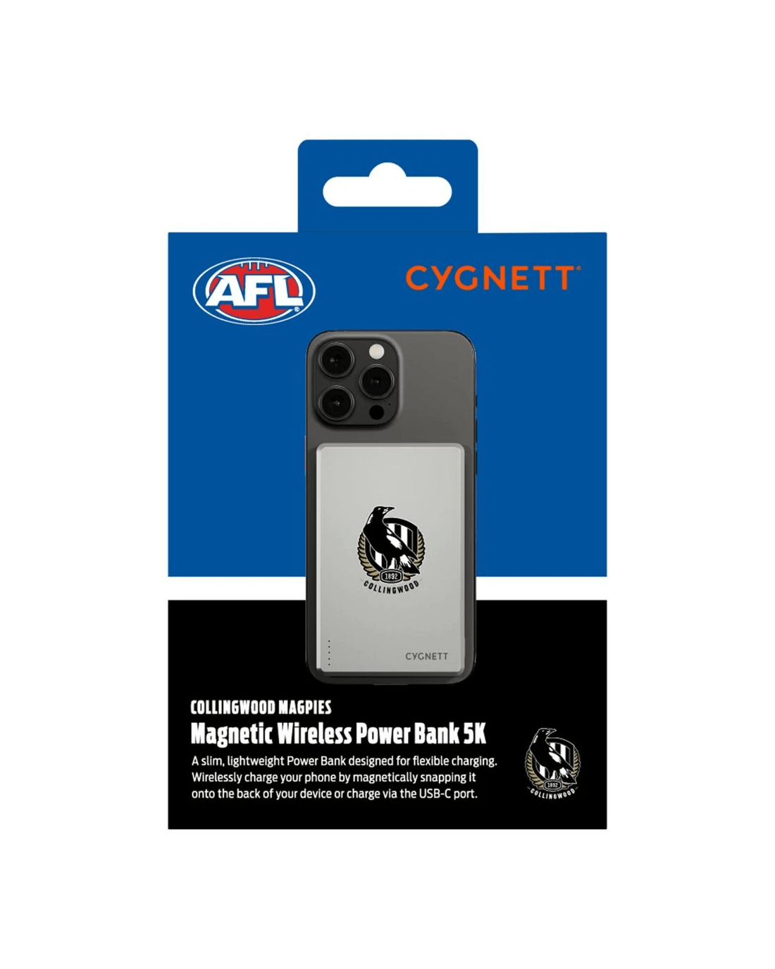 - This powerbank is Officially Licensed by the AFL and has a Collingwood Magpies design.
