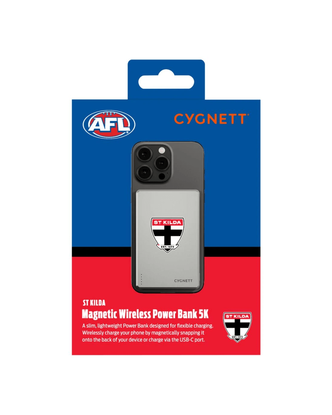 - This powerbank is Officially Licensed by the AFL and has a St Kilda Saints design.