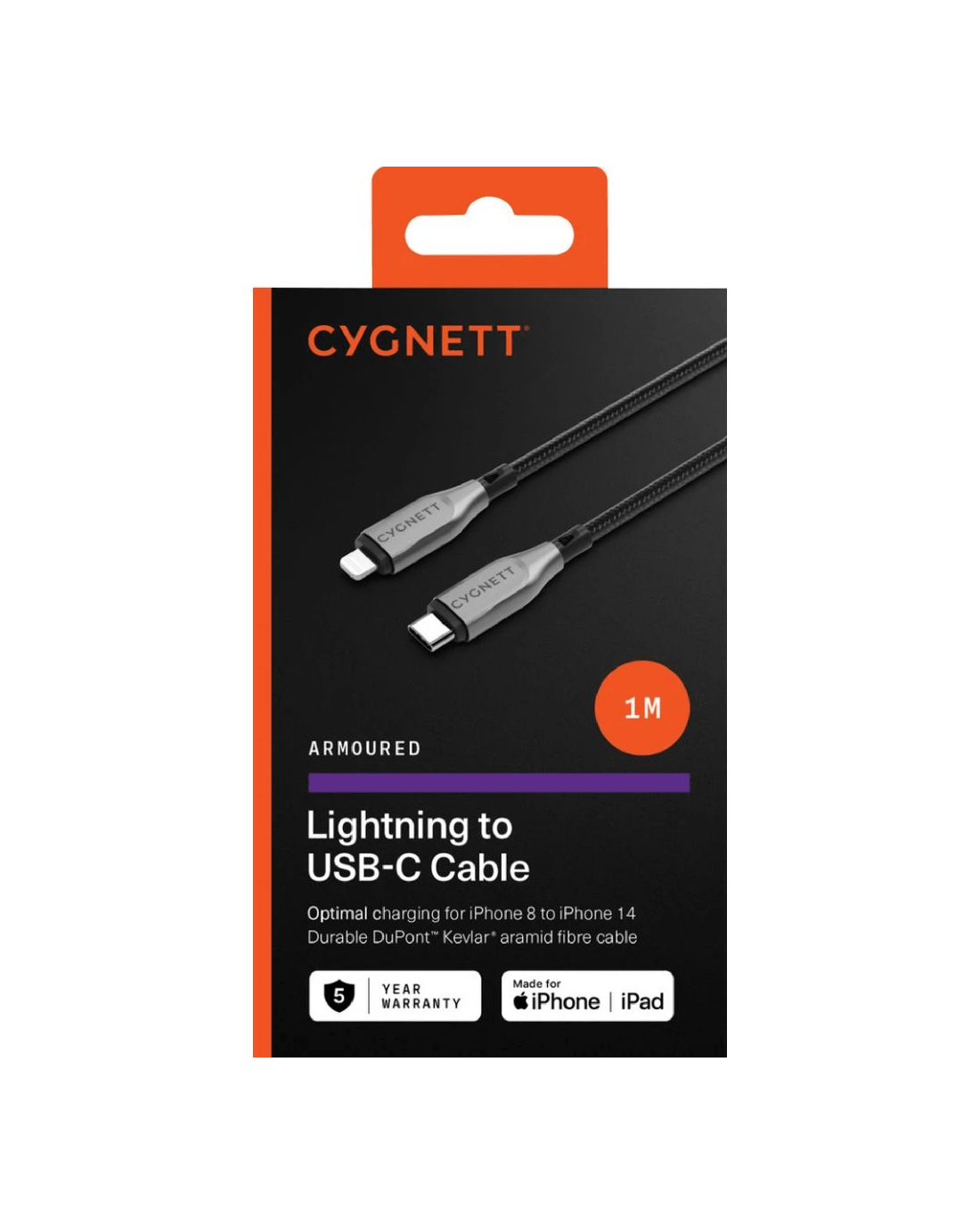 Sold by OfficeworksCygnett Armoured Lightning to USB-C Cable 1m Black