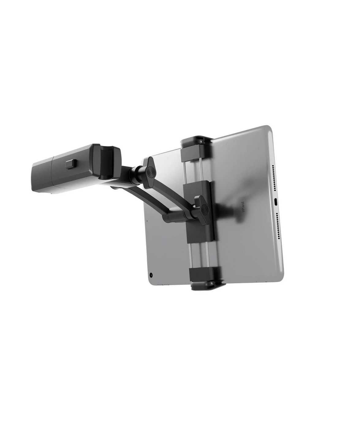 - Position your tablet in portrait or landscape orientation with the swivel arm.
