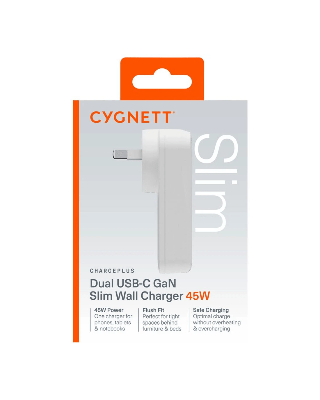 Sold by OfficeworksCygnett ChargePlus 45W Dual USB-C Slim Wall Charger