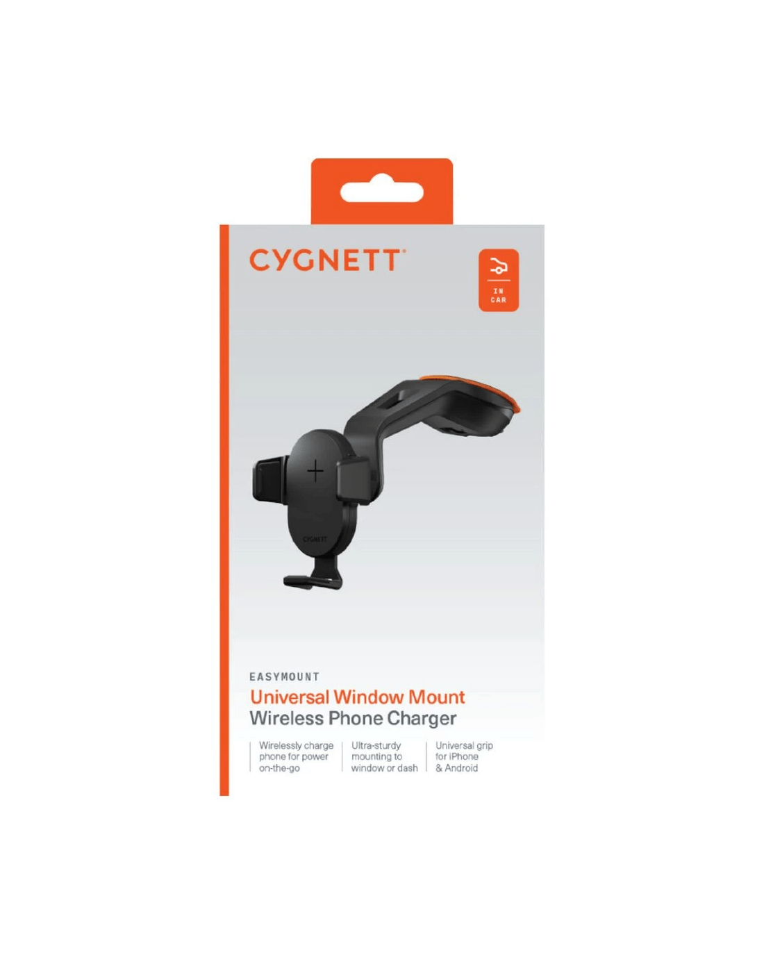 This Cygnett EasyMount Wireless Car Charger gives you the simplicity of wireless charging while on the go. The adjustable mount (180° rotation) lets you position your device in either landscape or portrait mode while keeping it securely fixed to a windscreen, window or dashboard. The sturdy fastening latch and UV stabilised PU rubber suction cup provide a reliable attachment in any vehicle.