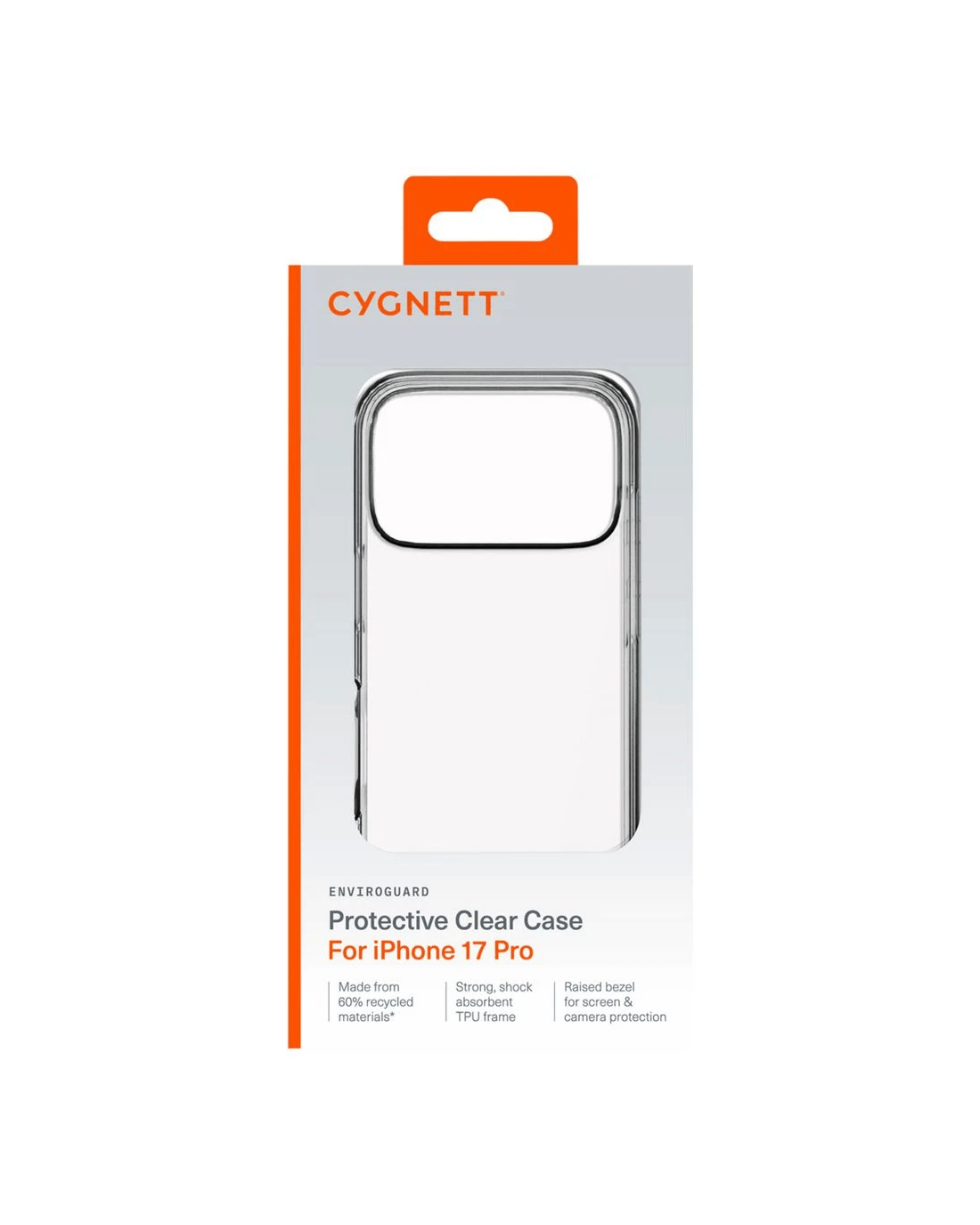 The Cygnett EnviroGuard Clear Case is a slim, lightweight protective case for iPhone. It combines a clear polycarbonate back with a shock-absorbent TPU frame, it offers everyday protection against bumps, scratches, and drops.