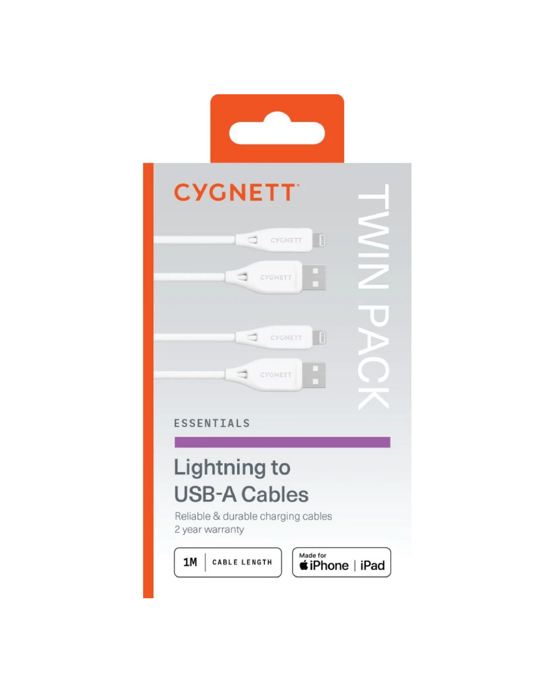 Sold by OfficeworksCygnett Essentials Lightning to USB-A Cable 1m White 2 Pack