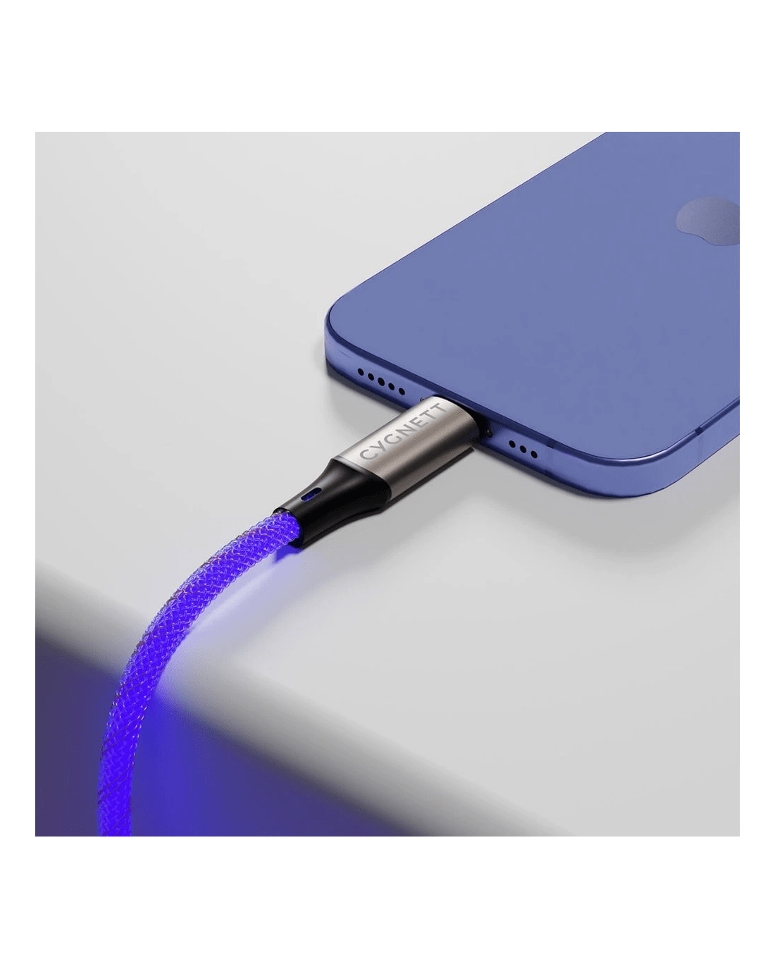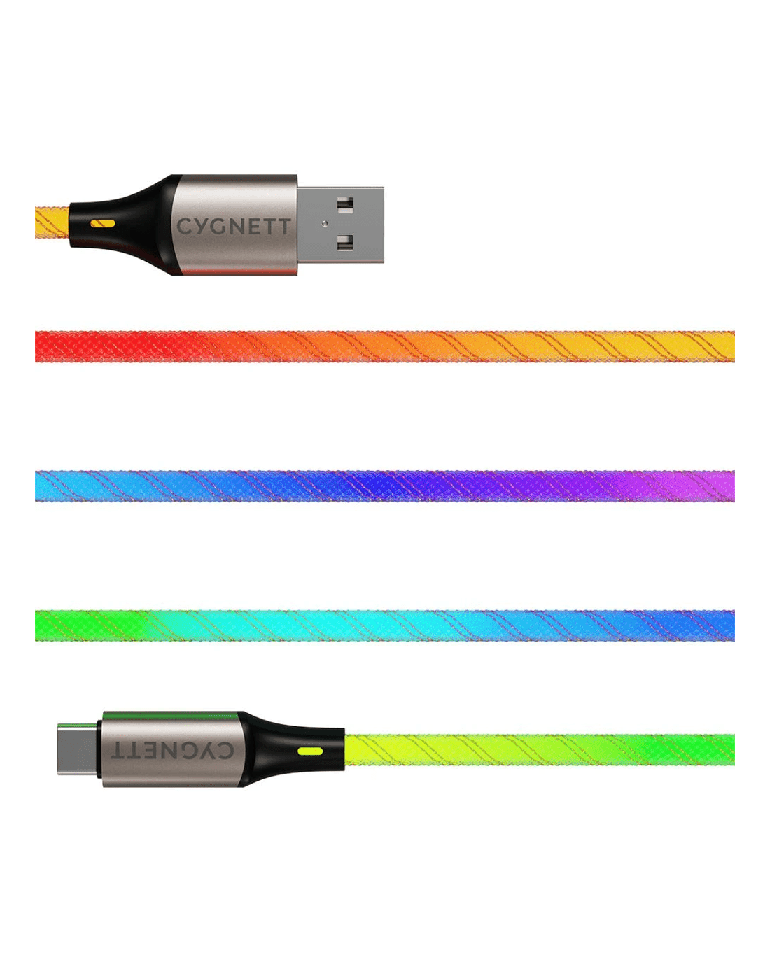 Transform your charging routine with a dazzling rainbow light show that transitions through a spectrum of colours with this Cygnett Illuminate Cable. Experience 60W fast charging and high-speed data transfer, making it the perfect companion for work, home or your car. Plus, this cable features a durable braided design and is optimised for use with Apple CarPlay and Android Auto.