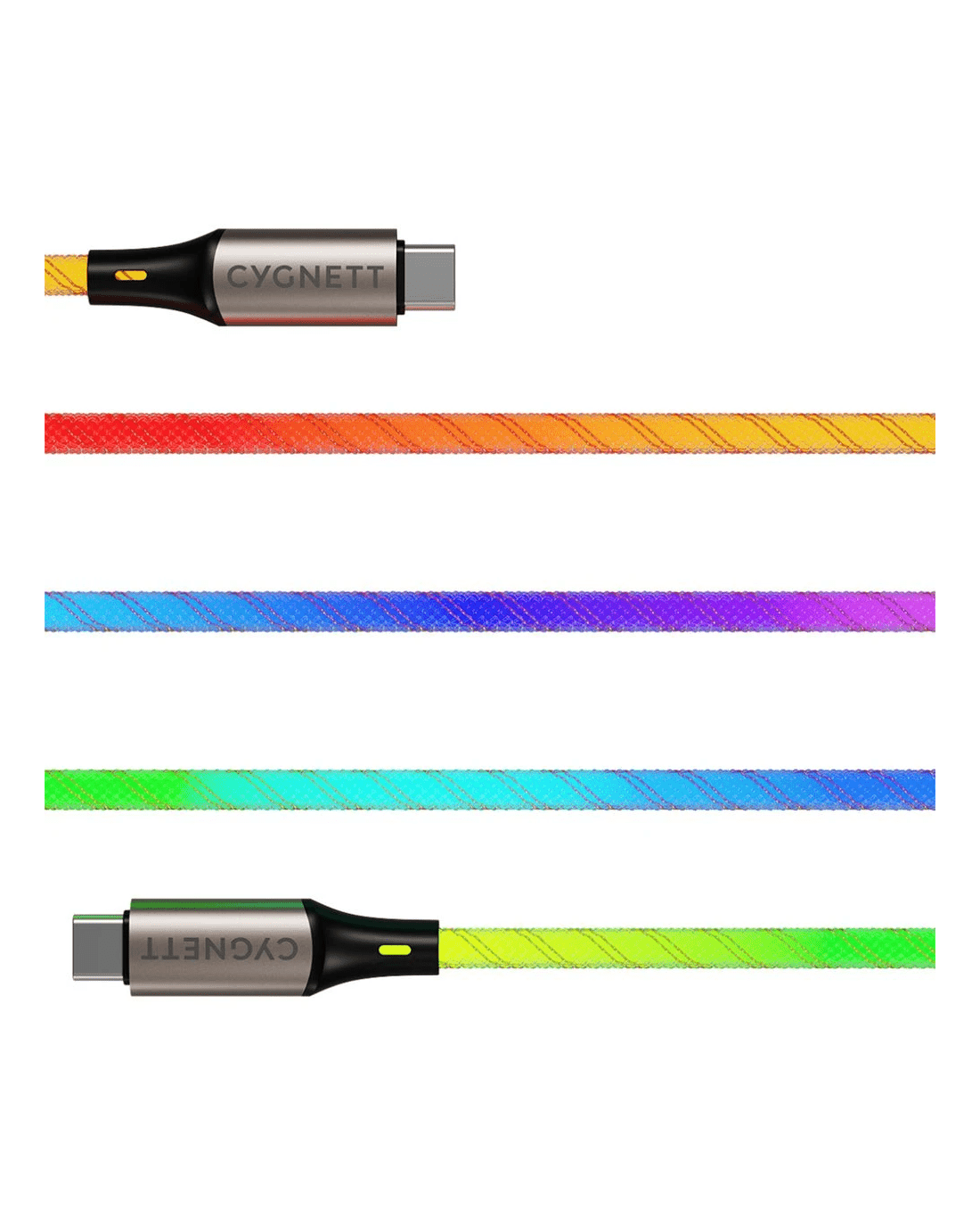 Transform your charging routine with a dazzling rainbow light show that transitions through a spectrum of colours with this Cygnett Illuminate Cable. Experience 60W fast charging and high-speed data transfer, making it the perfect companion for work, home or your car. Plus, this cable features a durable braided design and is optimised for use with Apple CarPlay and Android Auto.