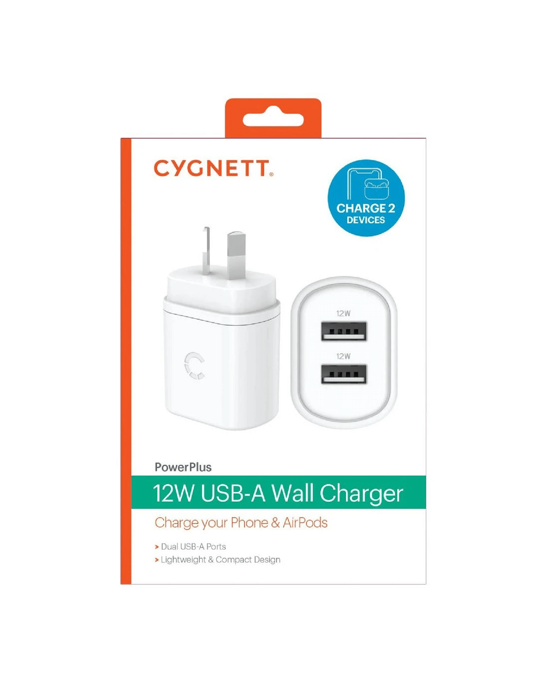 Cygnett PowerPlus 12W Dual USB-A Wall Charger