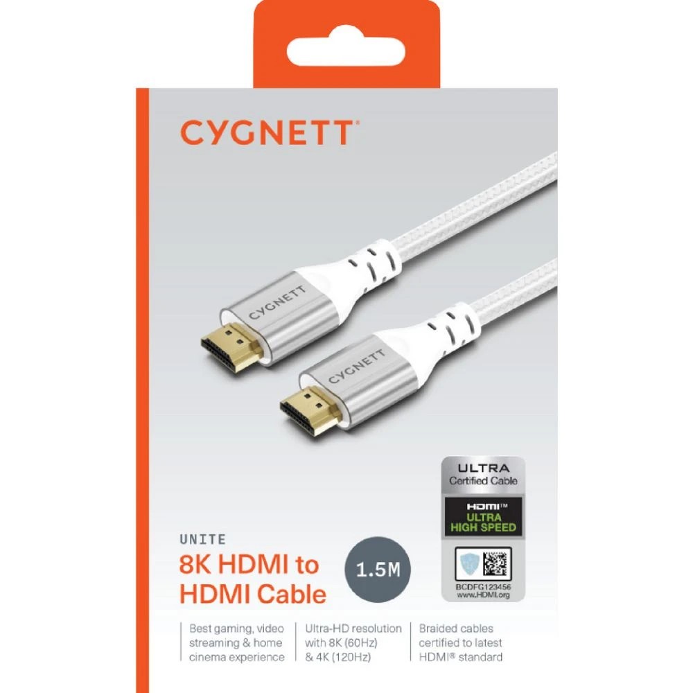 Cygnett Unite HDMI to HDMI 8K Braided Cable 1.5m White