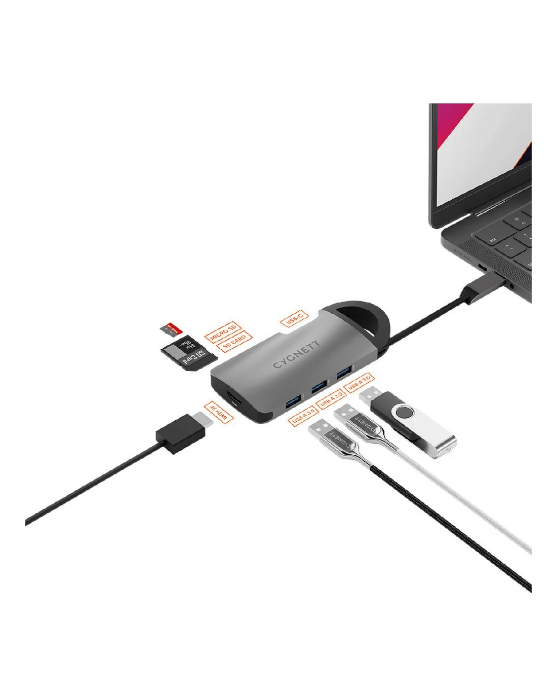 Sold by OfficeworksCygnett Unite KeyRing 7-in-1 USB-C Hub (Single HDMI)