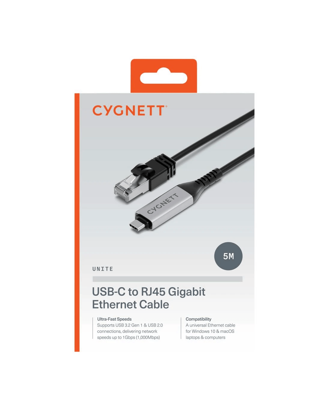 Cygnett Unite USB-C to Gigabit Ethernet Cable 5M Black