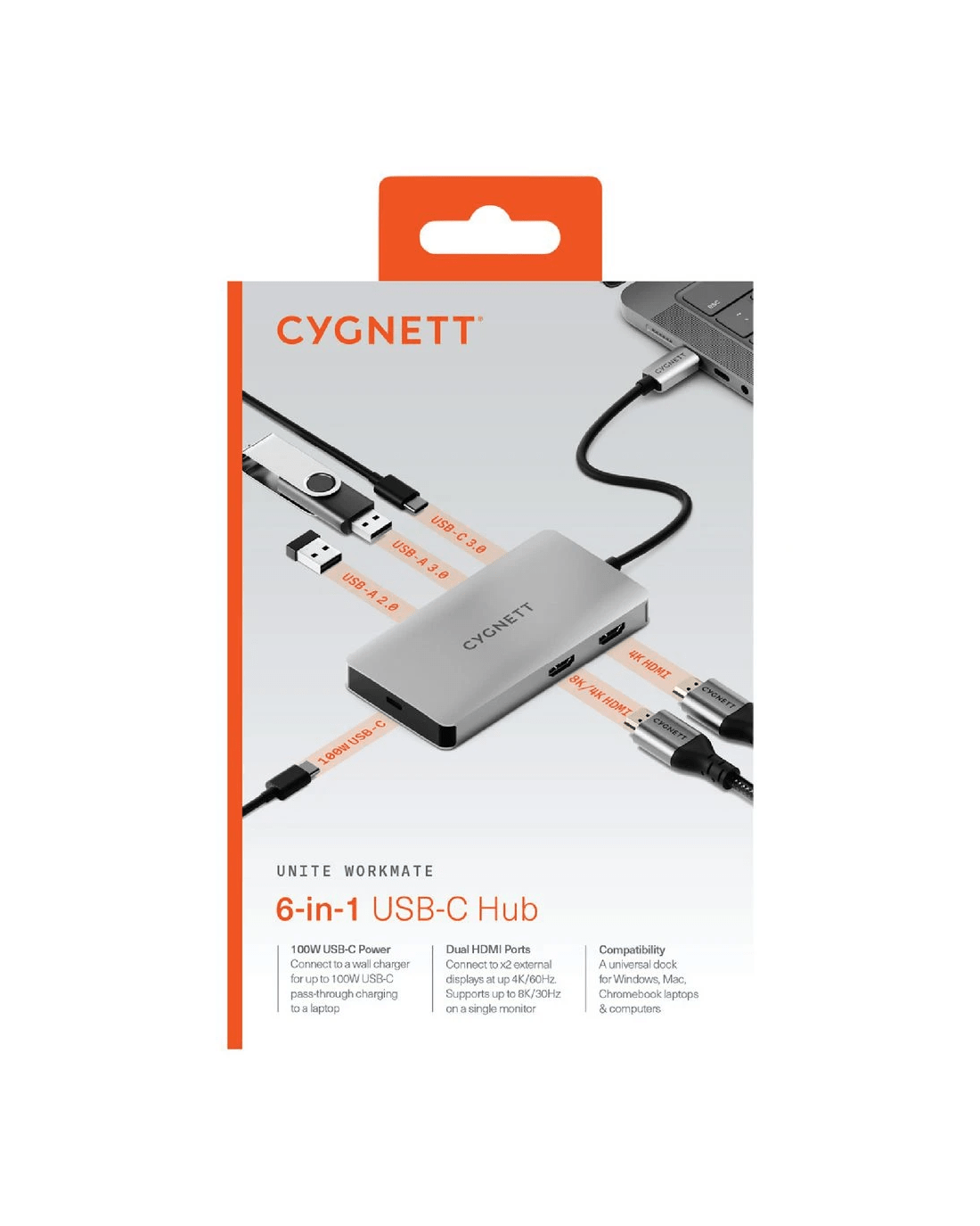 Sold by OfficeworksCygnett Unite WorkMate 6-in-1 USB-C HUB (Dual HDMI)