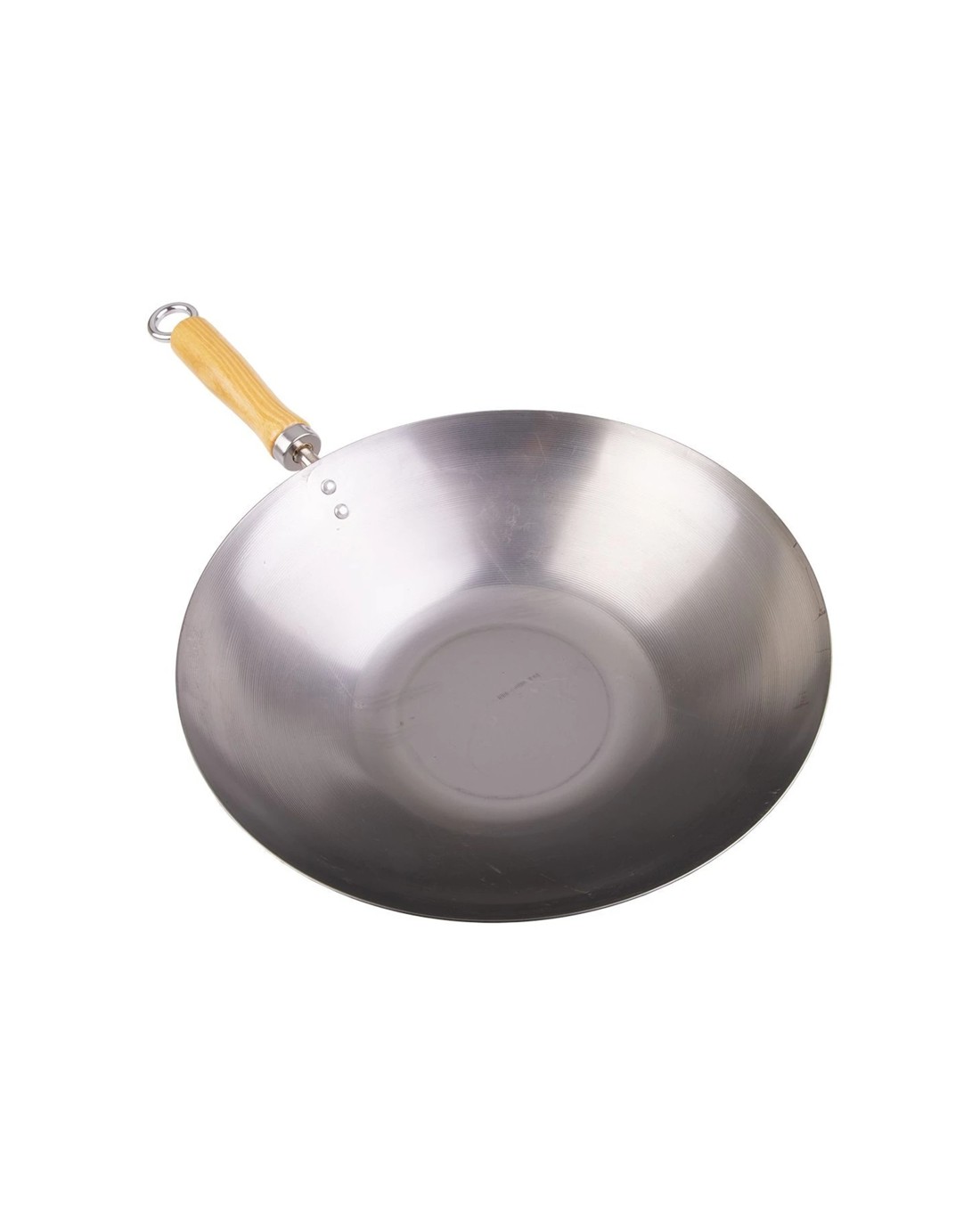 Sold by MatchboxD.line 30cm Carbon Steel Stir-fry Wok Flat Base Wooden Handle Induction - Silver