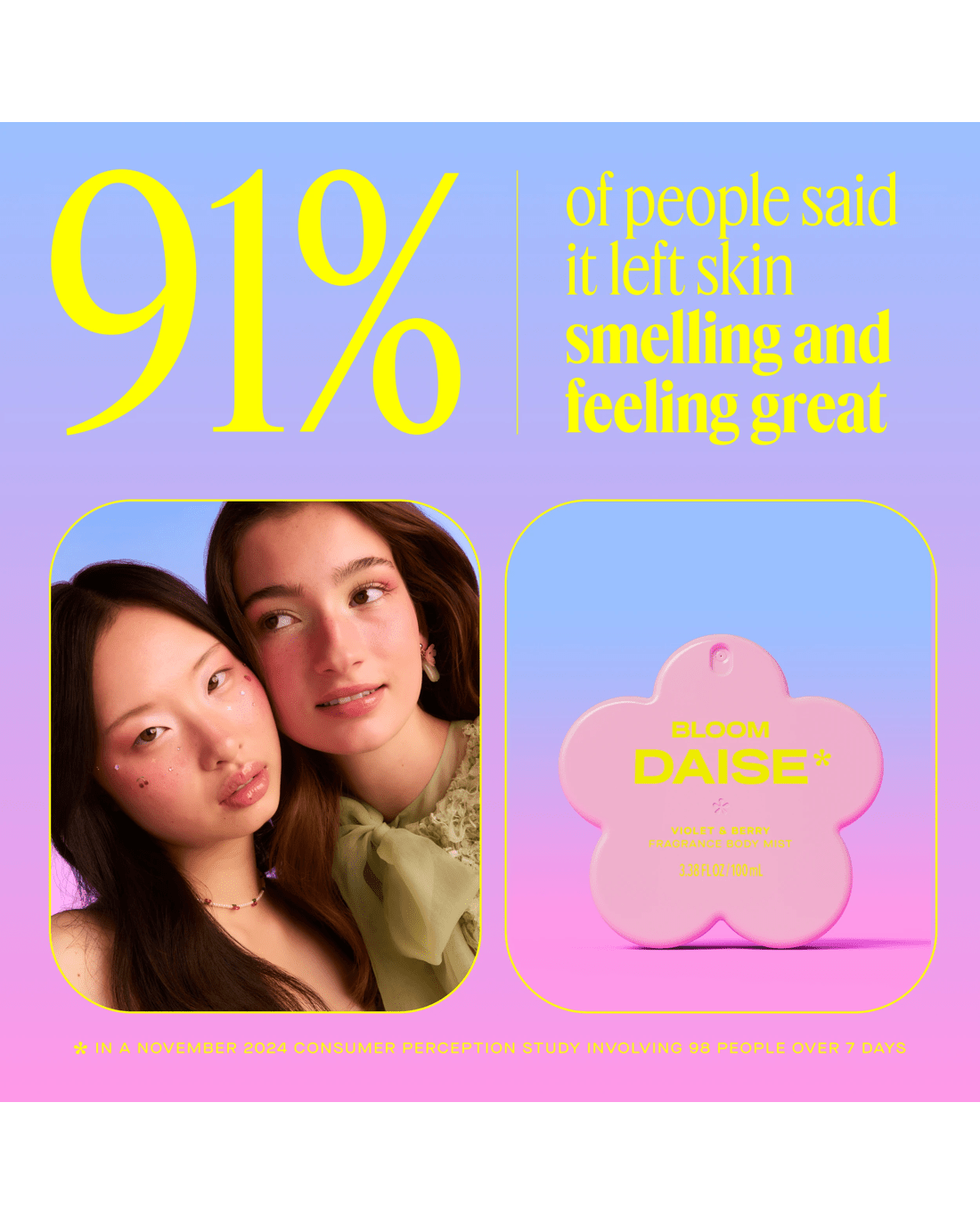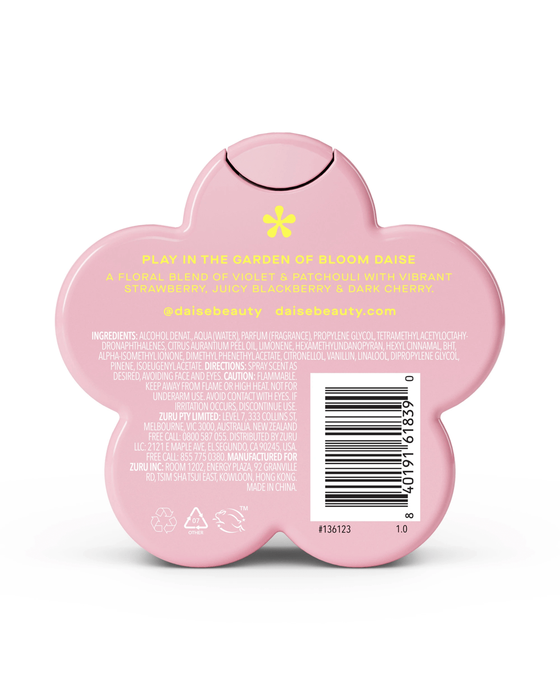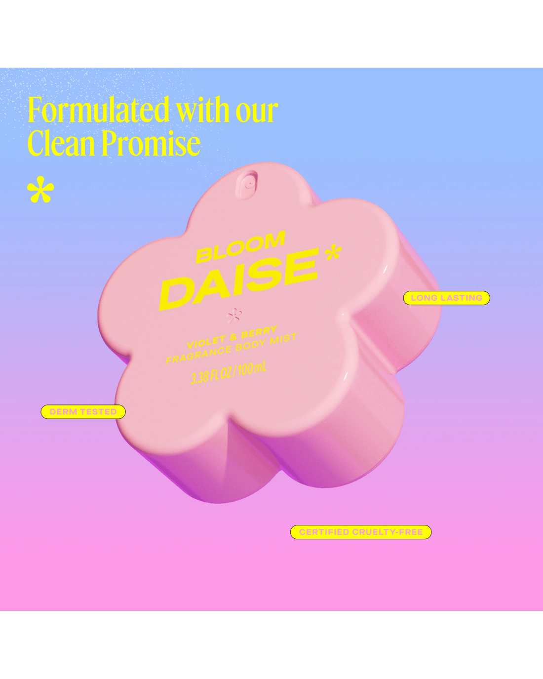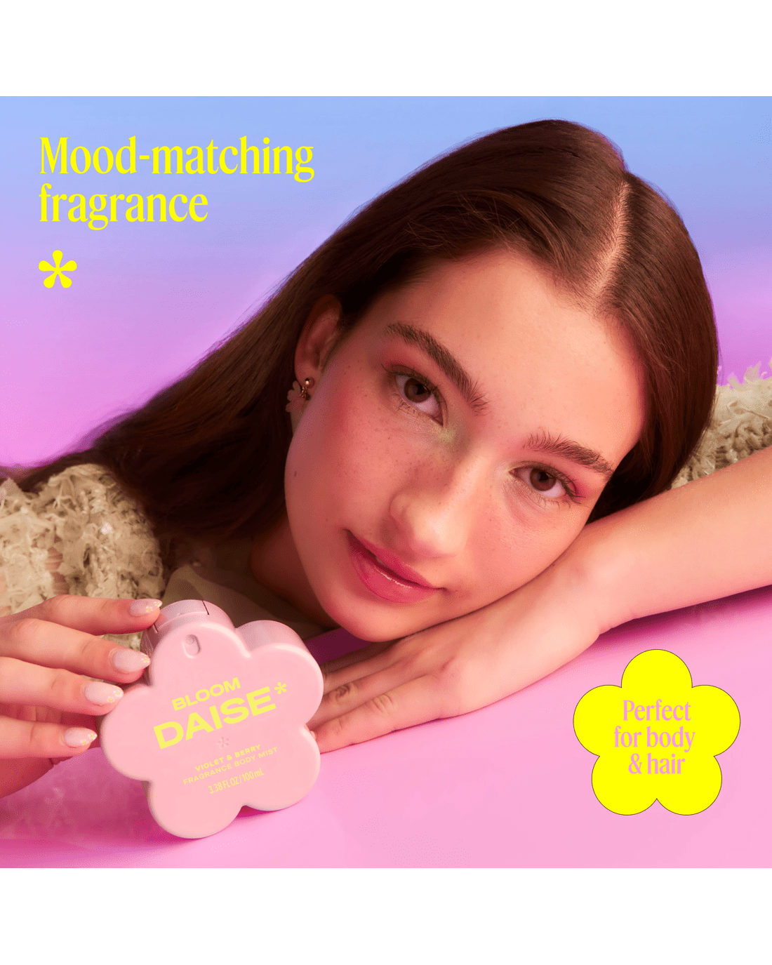 • DAISE bloom fragrance body mist: Violet & berry scented body mist with a playful, mood-lifting twist