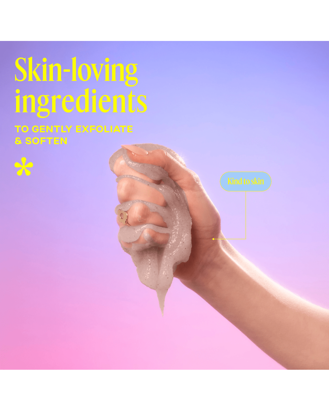 • Skin loving ingredients: To gently exfoliate and soften