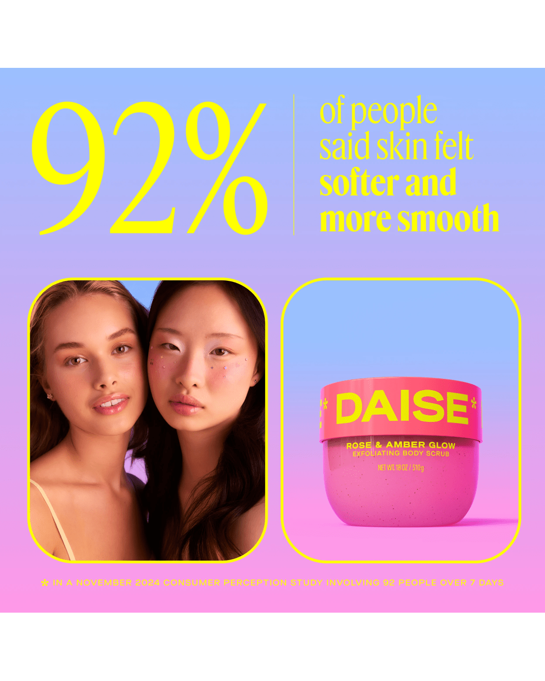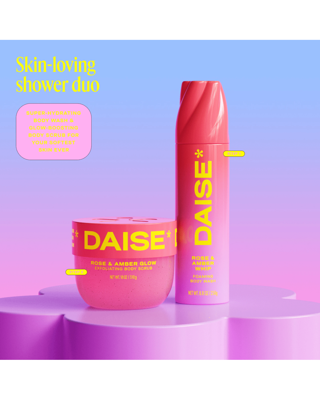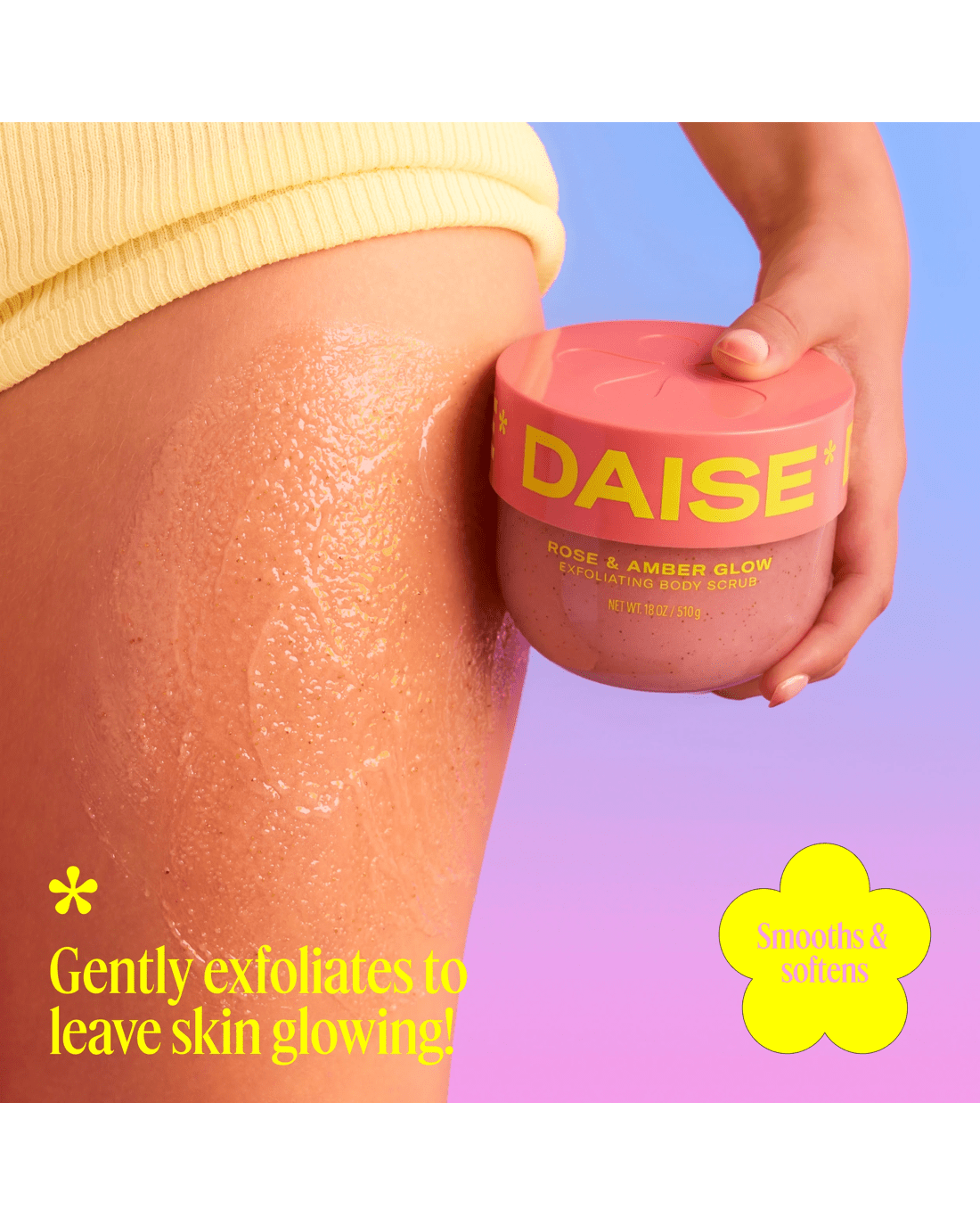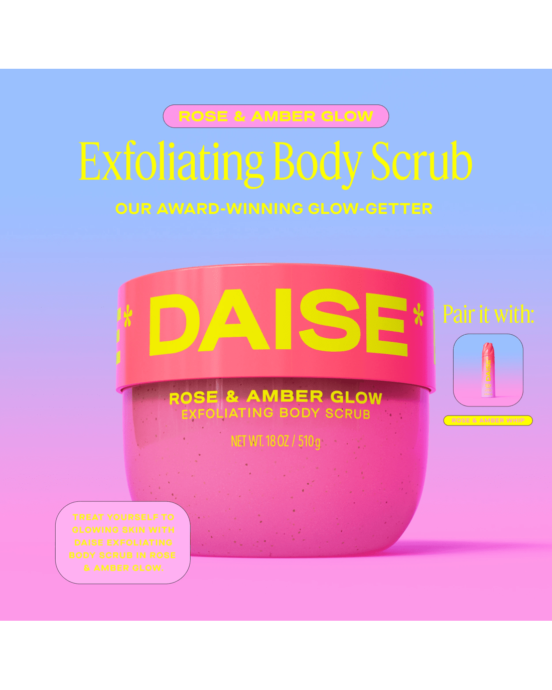 • DAISE Exfoliating Body Scrub: Rose & Amber scented body scrub formulated with skin-loving ingredients