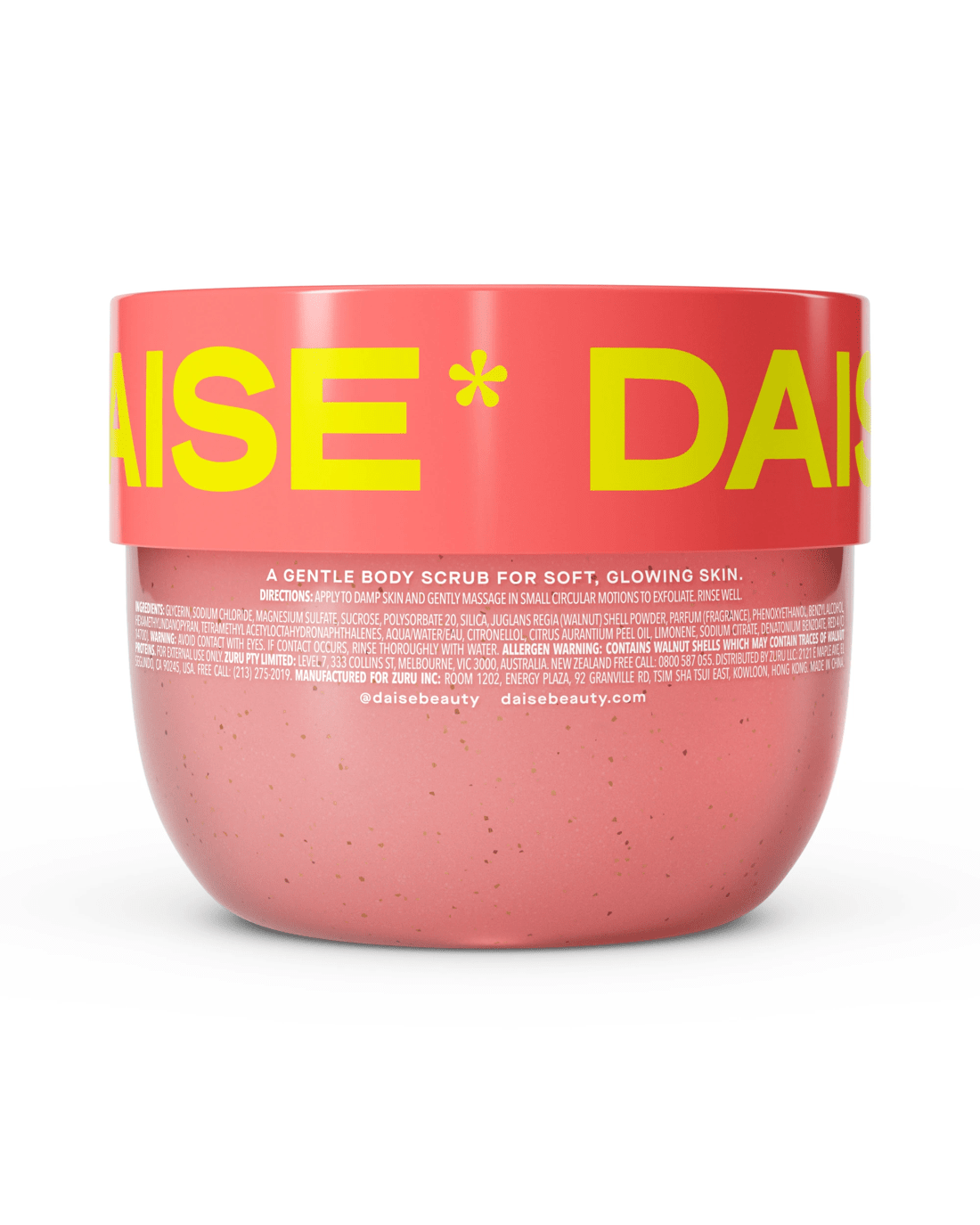 Looking for a shower experience that feels as fun and as fresh as you? DAISE Exfoliating Body Scrub in xoxo Glow is your perfect skin-renewing companion-featuring a warm, cozy amber and rose scent that's playful, comforting and effortlessly cute. This gentle, exfoliating formula smooths and refreshes skin while leaving it subtly scented, soft and glowing, no matter your vibe or routine. Formulated with DAISE's Clean Promise and dermatologically tested, it's suitable for all skin types and perfect for daily or weekly use. Whether you're starting your morning or winding down after a long day, xoxo Glow brings that little moment of joy to your bath or shower. Available in eight fun, collectible scents-Cherry Glow, Coconut Glow, Melon Glow, Pineapple Glow, Pomegranate Glow, Vanilla Glow, Bloom Glow and xoxo Glow-this exfoliating scrub pairs perfectly with DAISE Foaming Body Wash and Bath Bombs for the ultimate pampering routine. Get ready to make your DAISE!