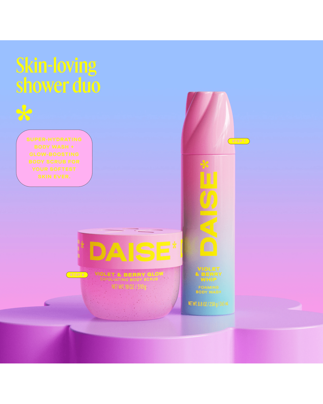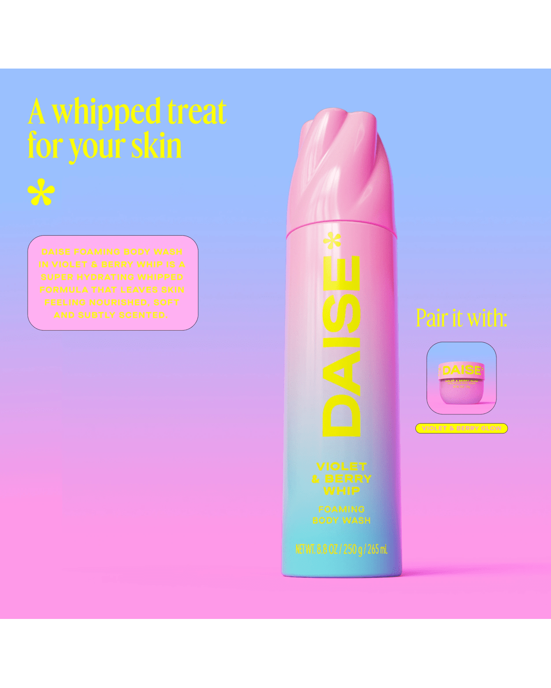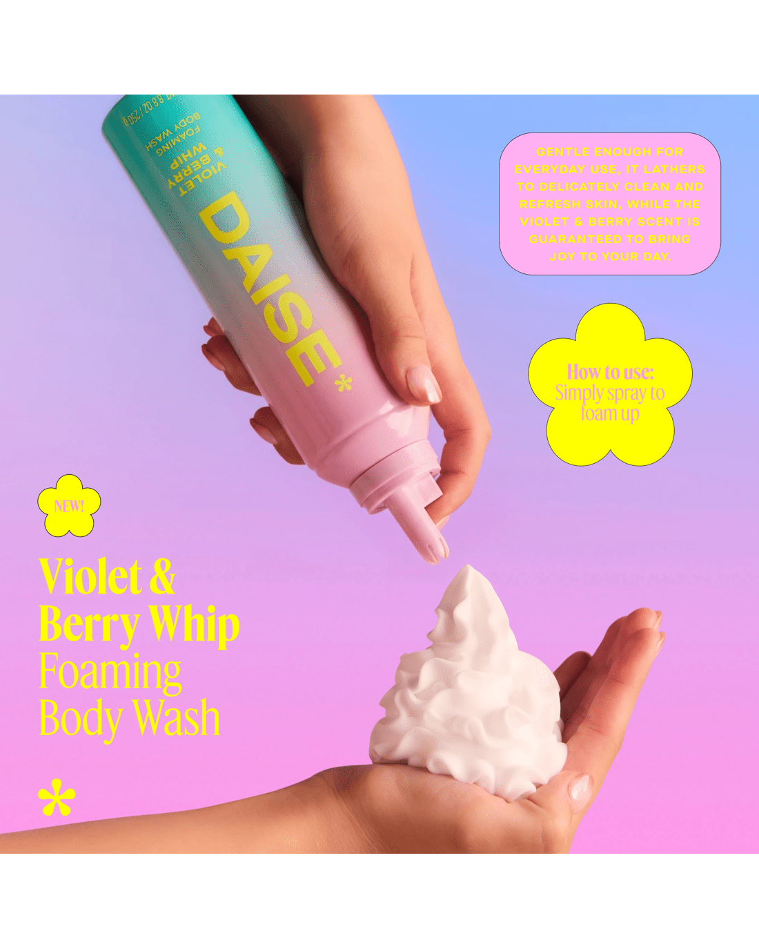 - DAISE Foaming Body Wash: A Violet & Berry scented whipped treat for your skin