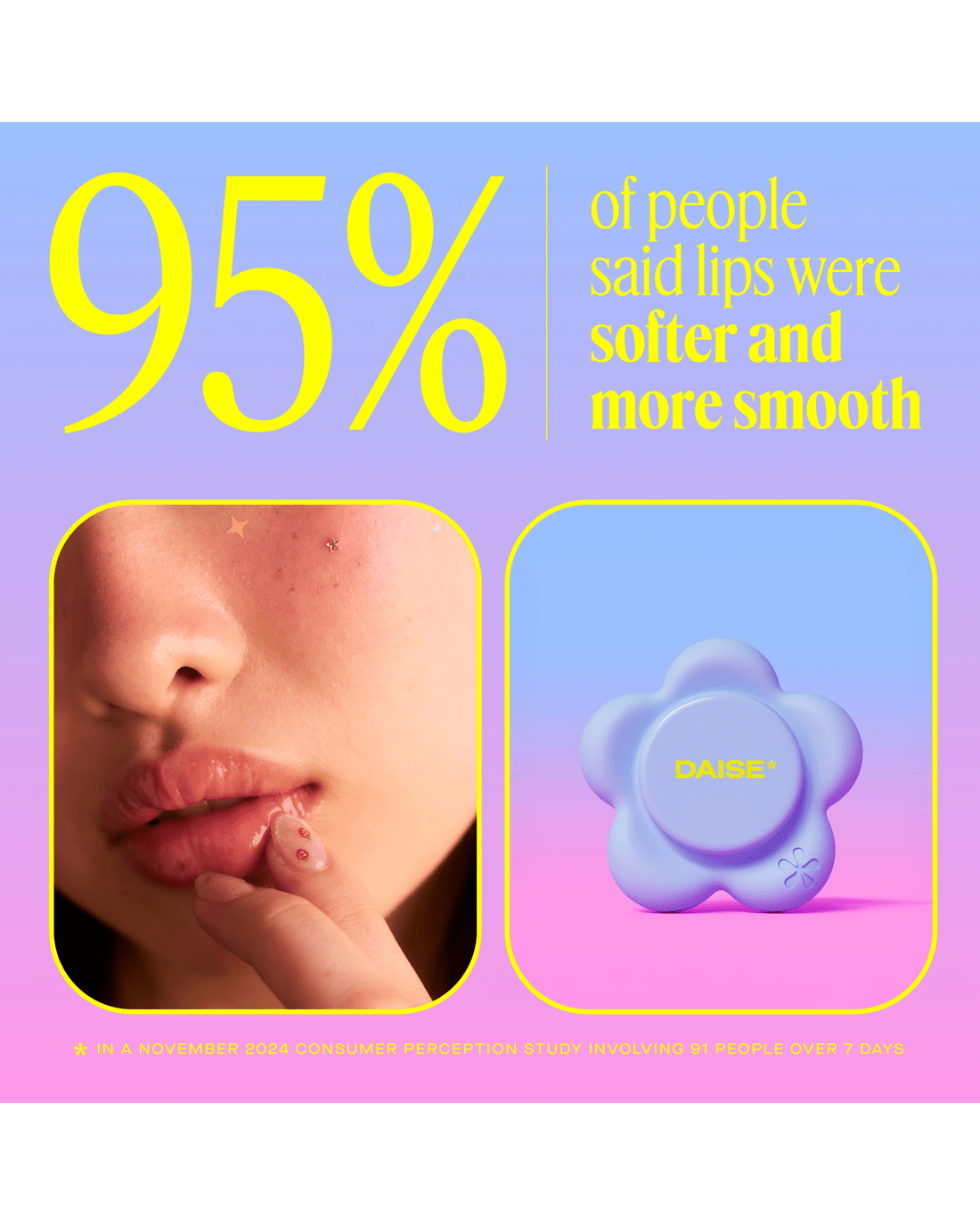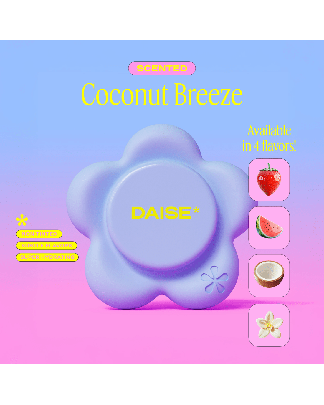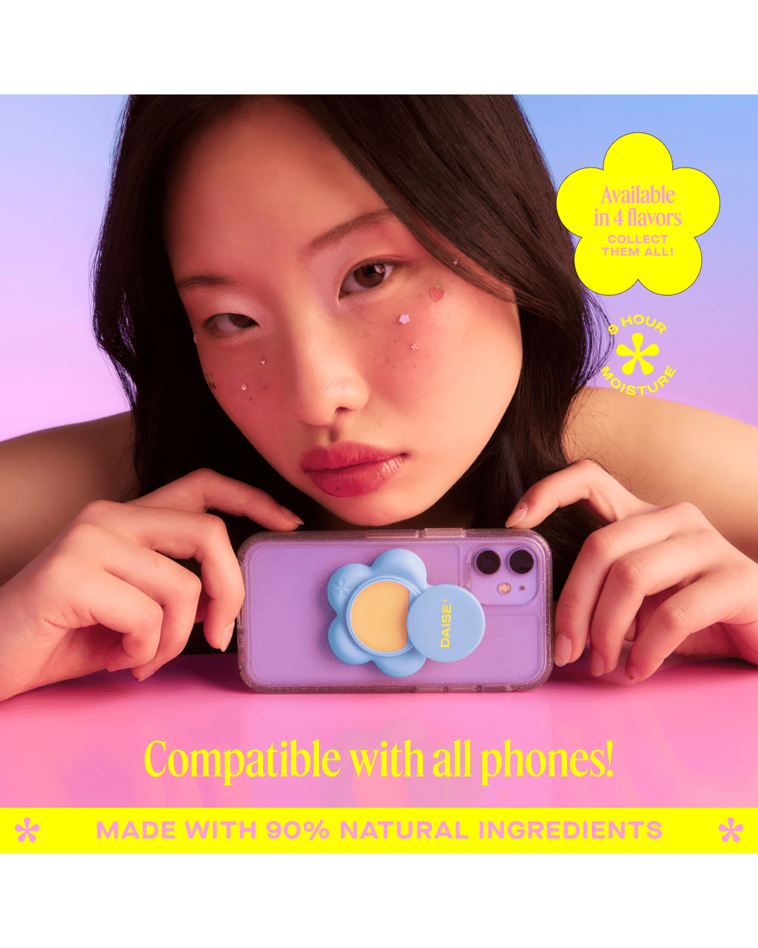 Looking for hydration that goes wherever you go? The DAISE Phone Petal Pod is a super-cute, phone-ready lip balm designed to keep your lips soft, smooth and moisturised anytime, anywhere. With its swivel-open design and stick-to-your-phone backing, this on-the-go essential makes self-care easy, fun and always within reach. Formulated with Vitamin E, Shea Butter, Coconut Oil and Avocado Oil, this non-tinted, non-drying balm delivers 8-hour moisture and a creamy Coconut flavour that boosts your mood with every swipe. The creamy, cushiony texture glides on effortlessly, leaving lips hydrated, conditioned and subtly sweet. Dermatologically tested, 90% natural, cruelty-free and made with our Clean Promise, it’s perfect for everyday use and all skin types. With its playful design and pocket-free convenience, the Phone Petal Pod is as good for your lips as it is for your daily routine.