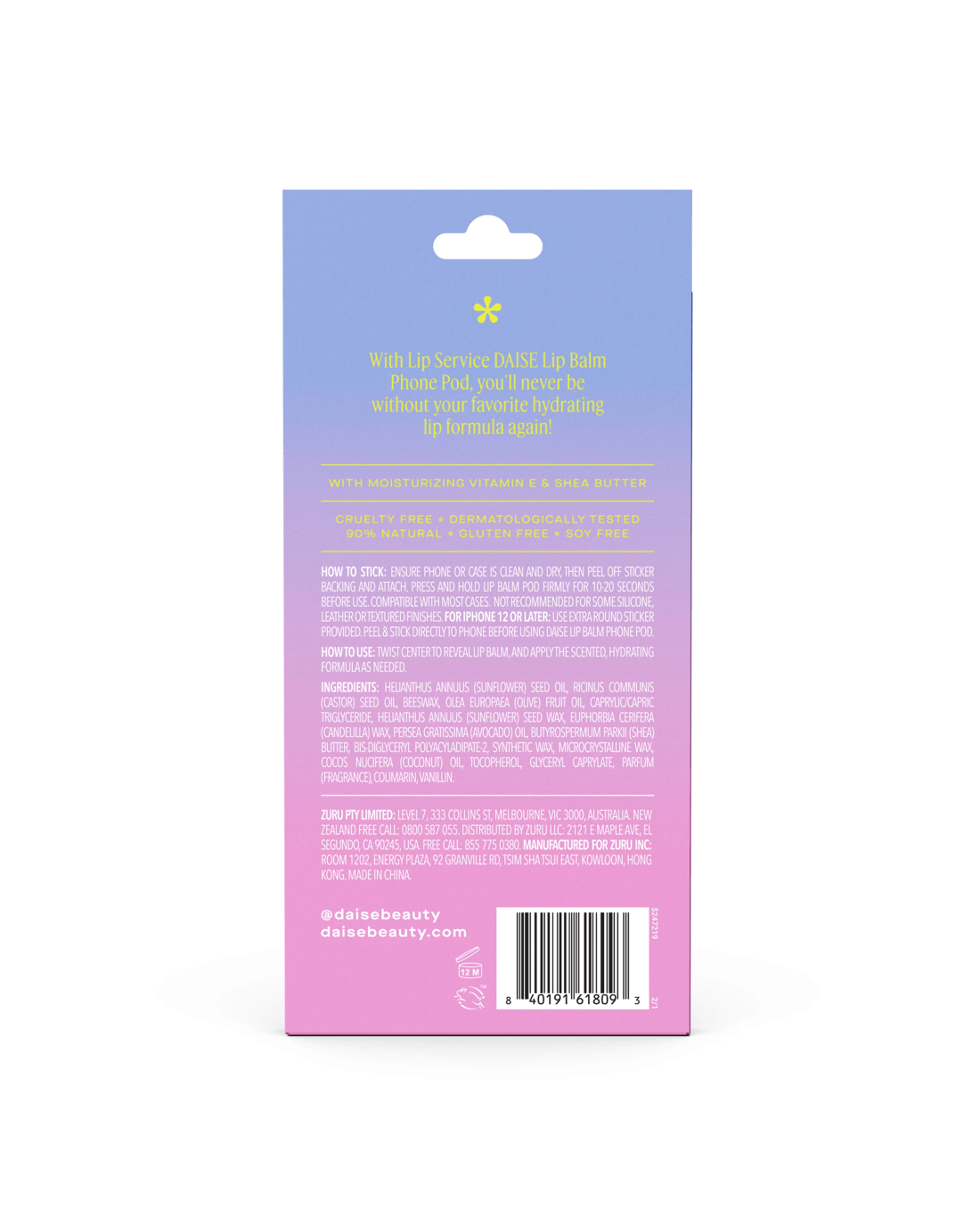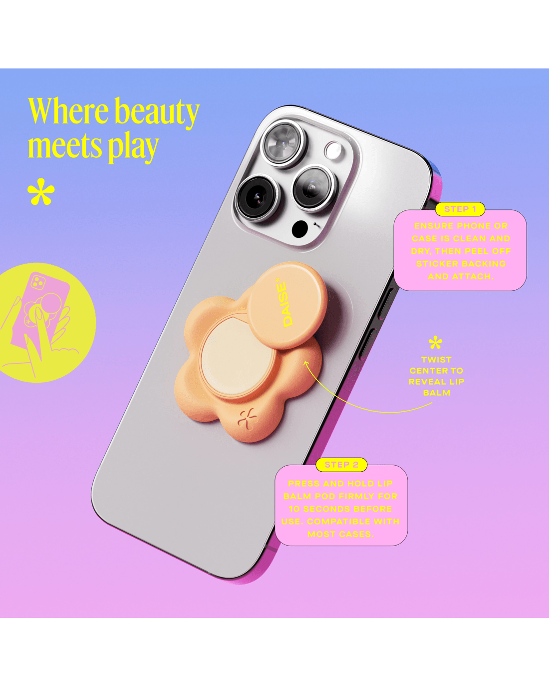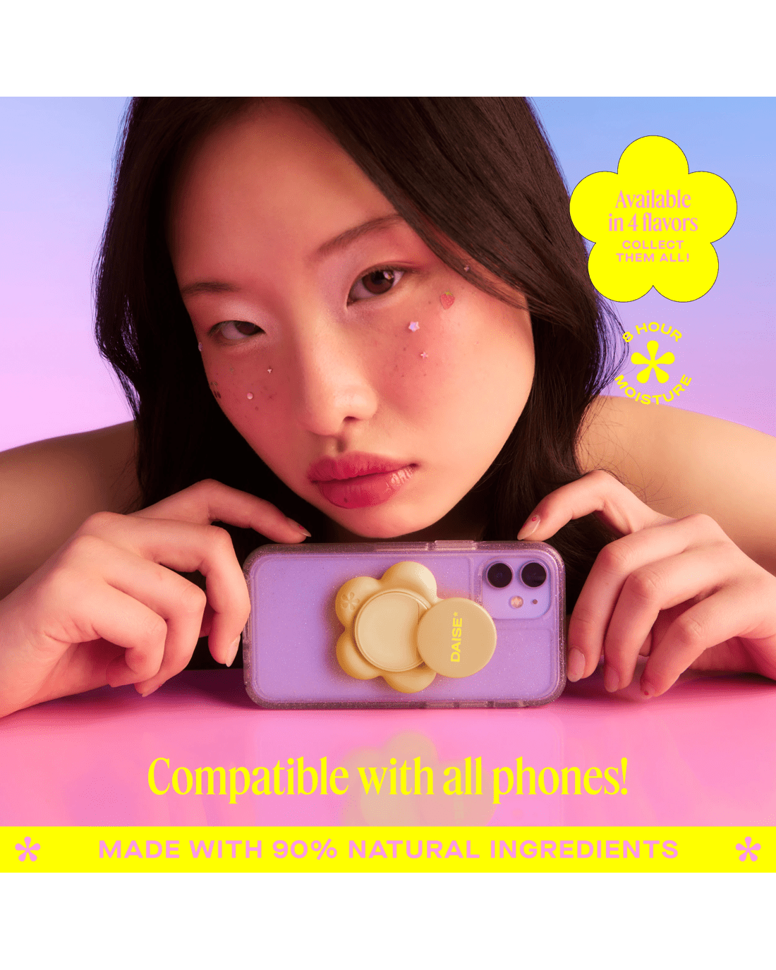 Looking for hydration that goes wherever you go? The DAISE Phone Petal Pod is a super-cute, phone-ready lip balm designed to keep your lips soft, smooth and moisturised anytime, anywhere. With its swivel-open design and stick-to-your-phone backing, this on-the-go essential makes self-care easy, fun and always within reach. Formulated with Vitamin E, Shea Butter, Coconut Oil, and Avocado Oil, this non-tinted, non-drying balm delivers 8-hour moisture and a dreamy Very Vanilla flavour that boosts your mood with every swipe. The creamy, cushiony texture glides on effortlessly, leaving lips hydrated, conditioned and subtly sweet. Dermatologically tested, 90% natural, cruelty-free and made with our Clean Promise, it’s perfect for everyday use and all skin types. With its playful design and pocket-free convenience, the Phone Petal Pod is as good for your lips as it is for your daily routine.