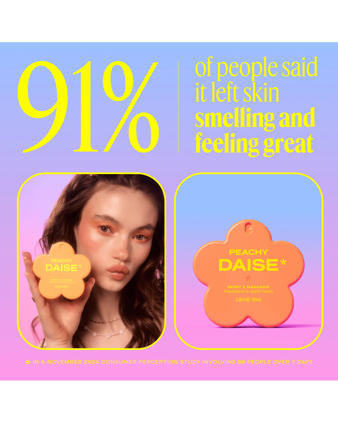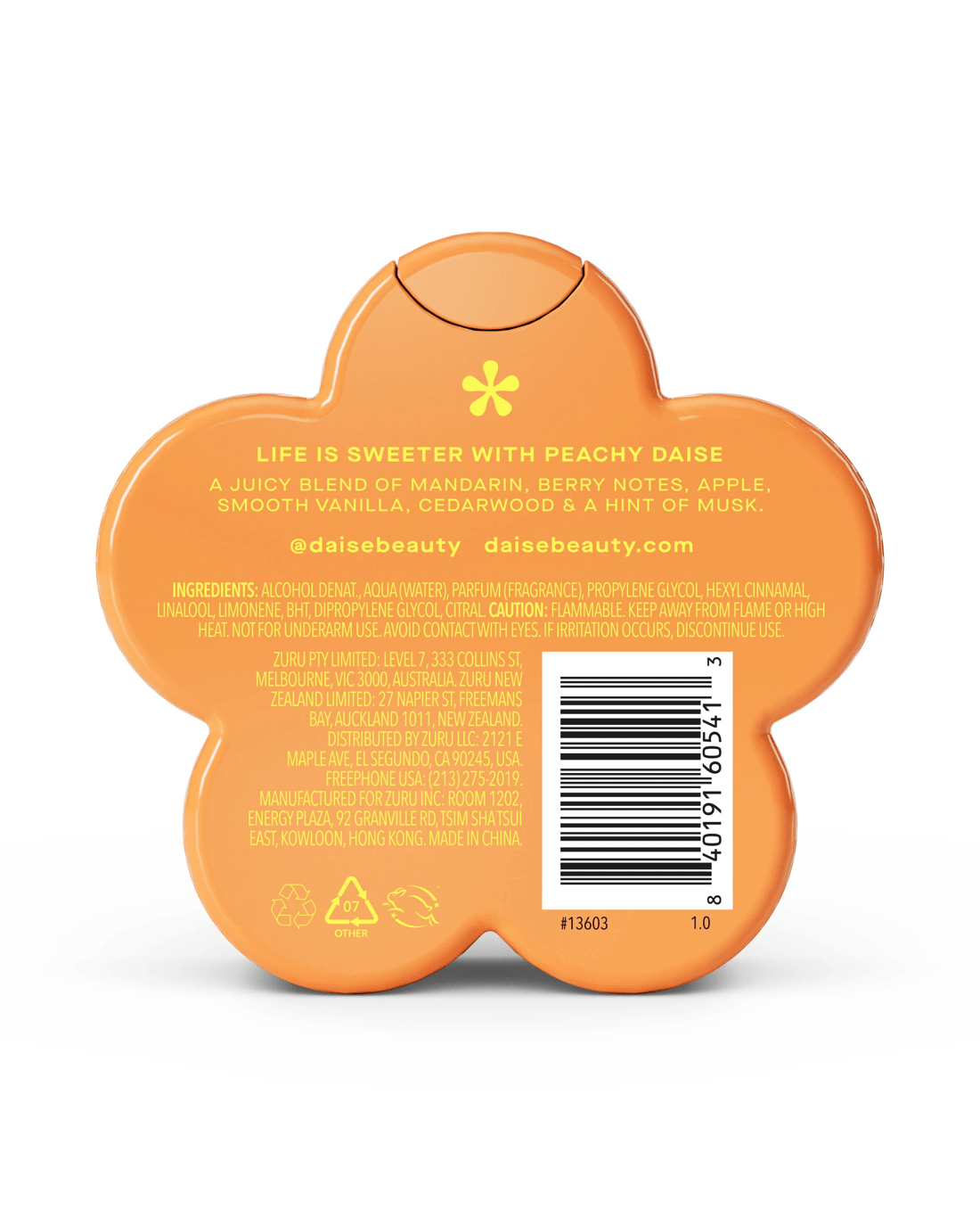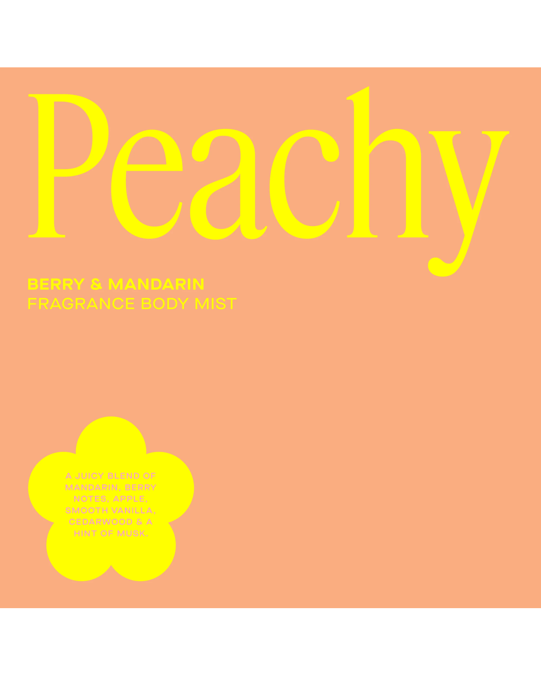 • Life is sweeter with Peachy Daise: A juicy blend of mandarin, berry notes, apple, smooth vanilla, cedarwood and a hint of musk