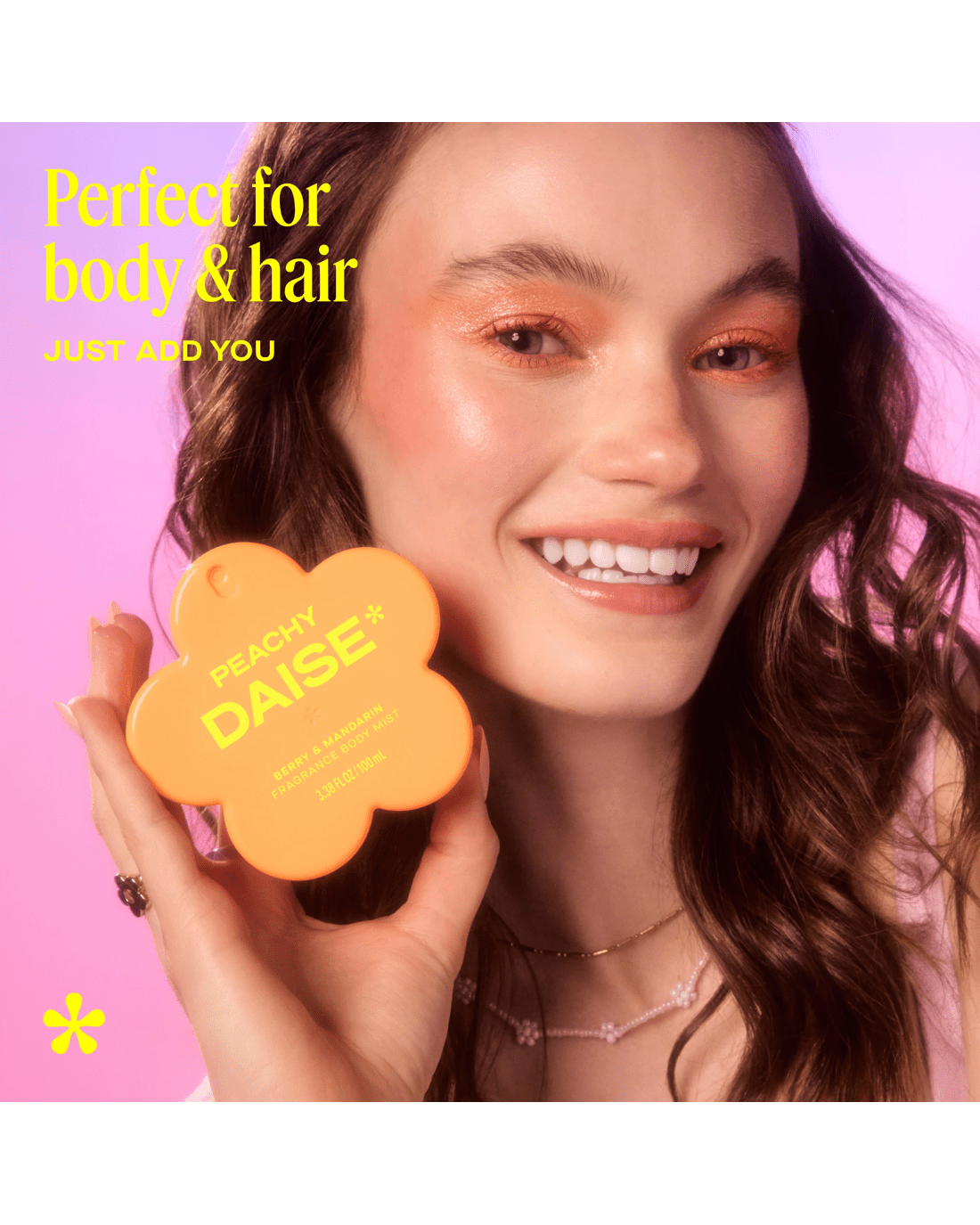 Meet your new go-to body and hair spritz! Daise Peachy Daise Fragrance Body Mist is a juicy, mood-matching berry and mandarin scent that's perfect for body and hair. Peachy Daise is a juicy blend of mandarin, berry, apple with smooth vanilla, cedarwood and a hint of musk-and lingers for up to 24 hours. Available in six cute and collectible floral- and fruit-forward fragrances, there's Happy Daise (Grape & Amber), Hello Daise (Raspberry & Mint), Lowkey Daise (Rose & Sandalwood), Oh So Daise (Pear & Patchouli), Peachy Daise (Berry & Mandarin) and Sunny Daise (Vanilla & Coconut). Spritz based on your mood, layer them to craft your signature scent, or mix-and-match to create a totally new Daise.