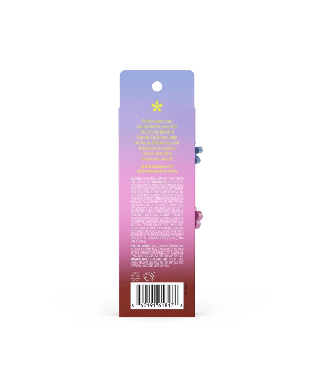 - With a super-cute inbuilt charm, keep this Hot Mocha flavoured Peptide Lip Butter Balm on you at all times for a hit of moisture as needed. Collect them all to match your mood!