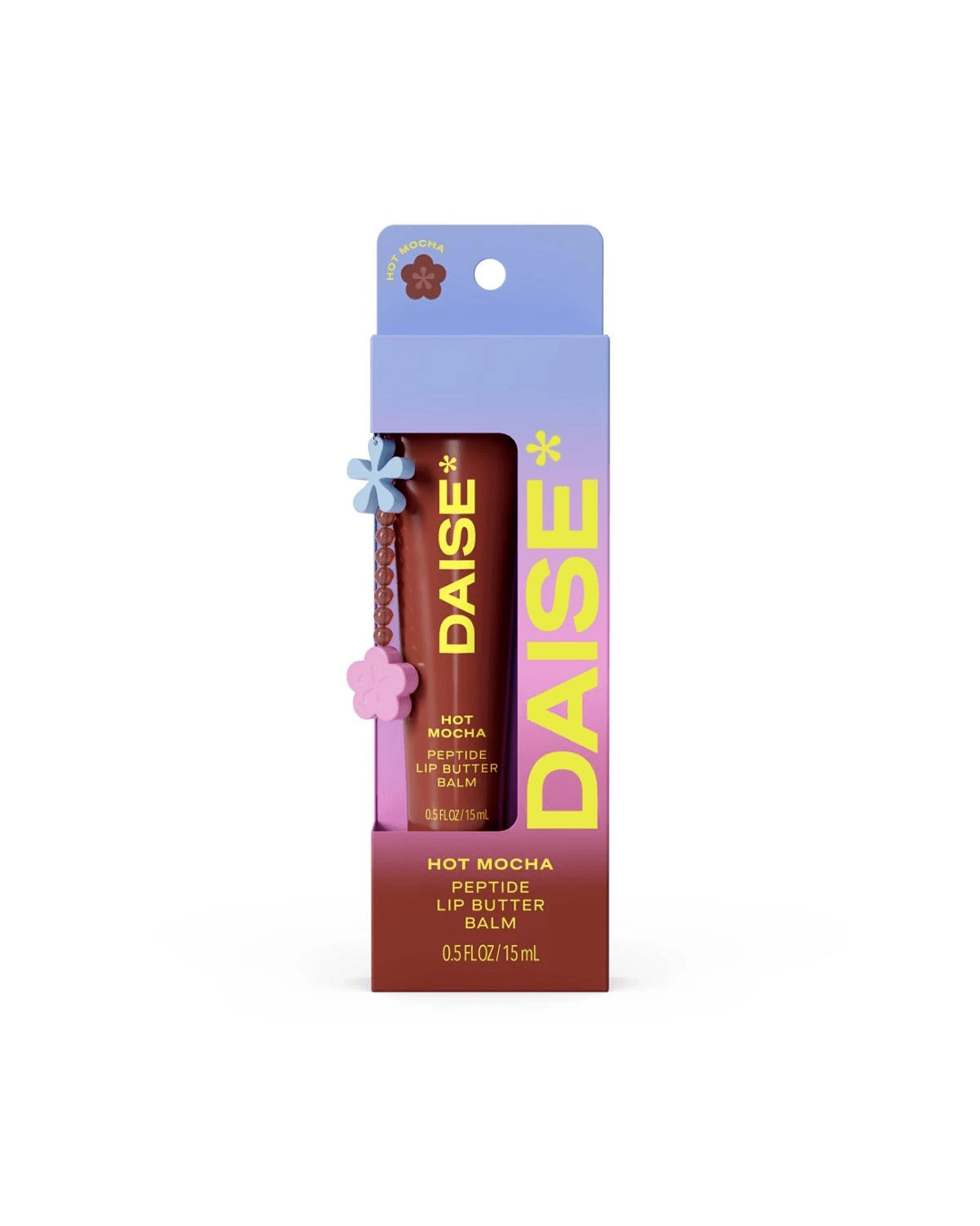 Looking for a lip balm that truly nourishes while providing a light tint? The DAISE Peptide Lip Butter Balm in Hot Mocha is infused with Peptides, Shea Butter and Meadowfoam Seed Oil to deeply hydrate, smooth and repair dry or flaky lips. Its rich, non-sticky texture melts in effortlessly, leaving lips butter-soft and naturally radiant through every season. With a subtle mocha scent and buildable sheer tint, it's perfect for everyday wear. Vegan, cruelty-free, dermatologically tested, and made with our clean promise, this balm delivers glossy, healthy, hydrated lips all day long. In six juicy flavours, these cute and collectible lip treats are almost good enough to eat: there's Berry Vanilla, Cake Pop, Cherry Bomb, Sugar Bear, Very Vanilla and Hot Mocha. Whatever your vibe, there's a DAISE to match! Collect your favourite flavours and colours to match your mood.