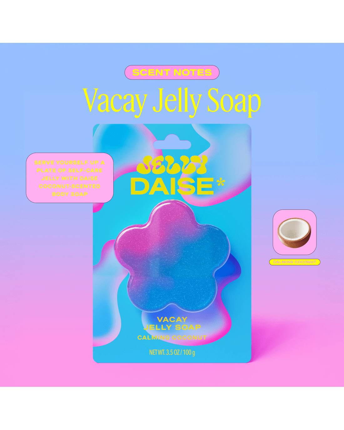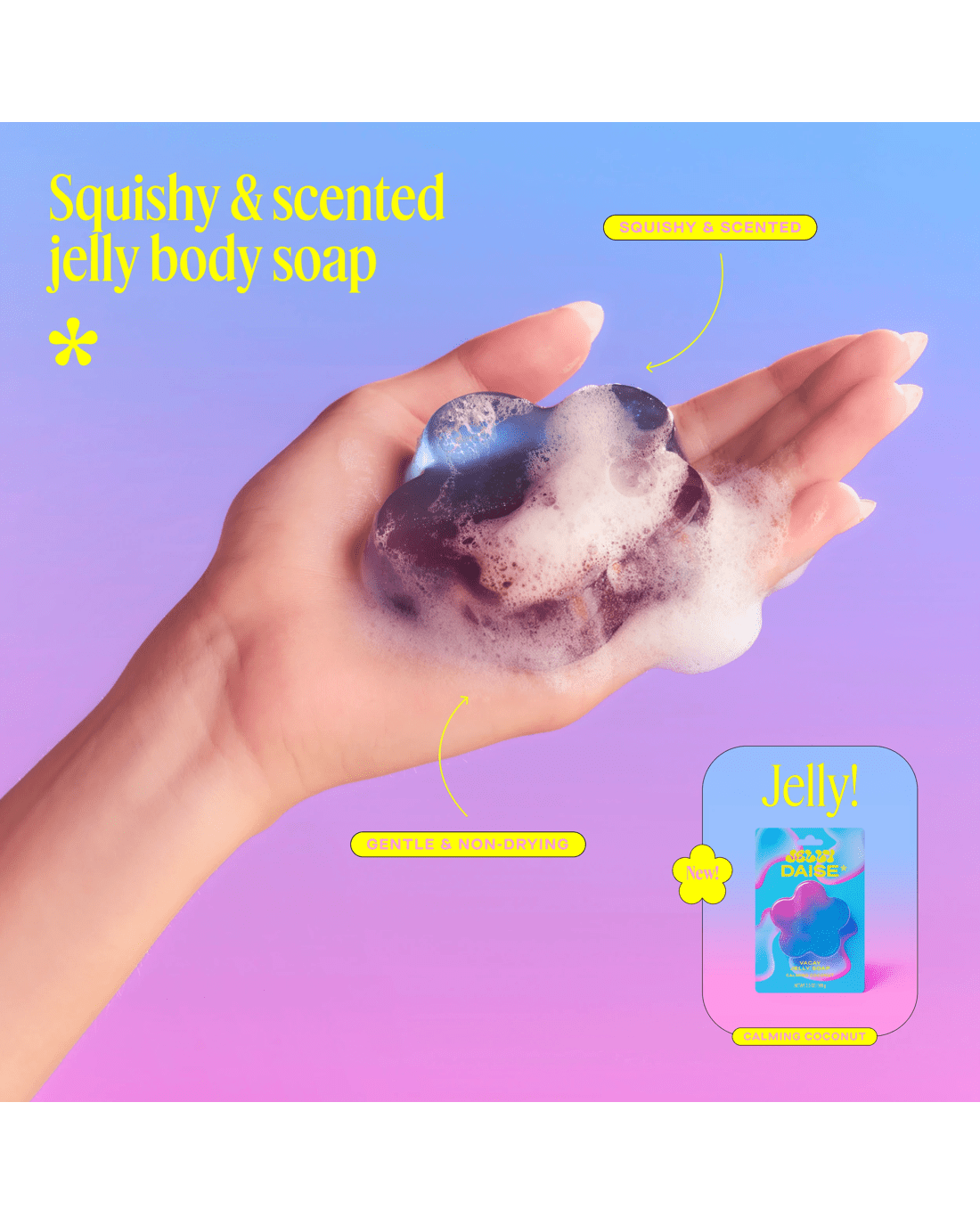 • A squishy, coconut scented Jelly Body Soap to lift your mood and make your DAISE