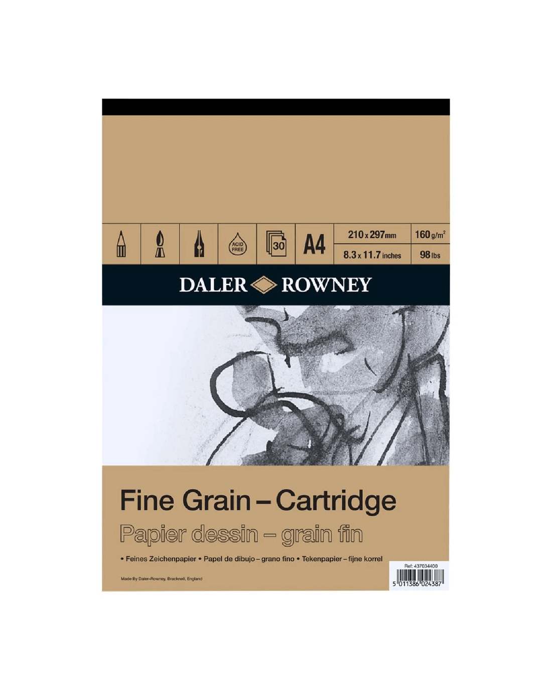 This Daler-Rowney Fine Grain Pad is perfect for both professional and student level artists. The lightly textured paper is ideal for all dry techniques, final artworks and sketching.