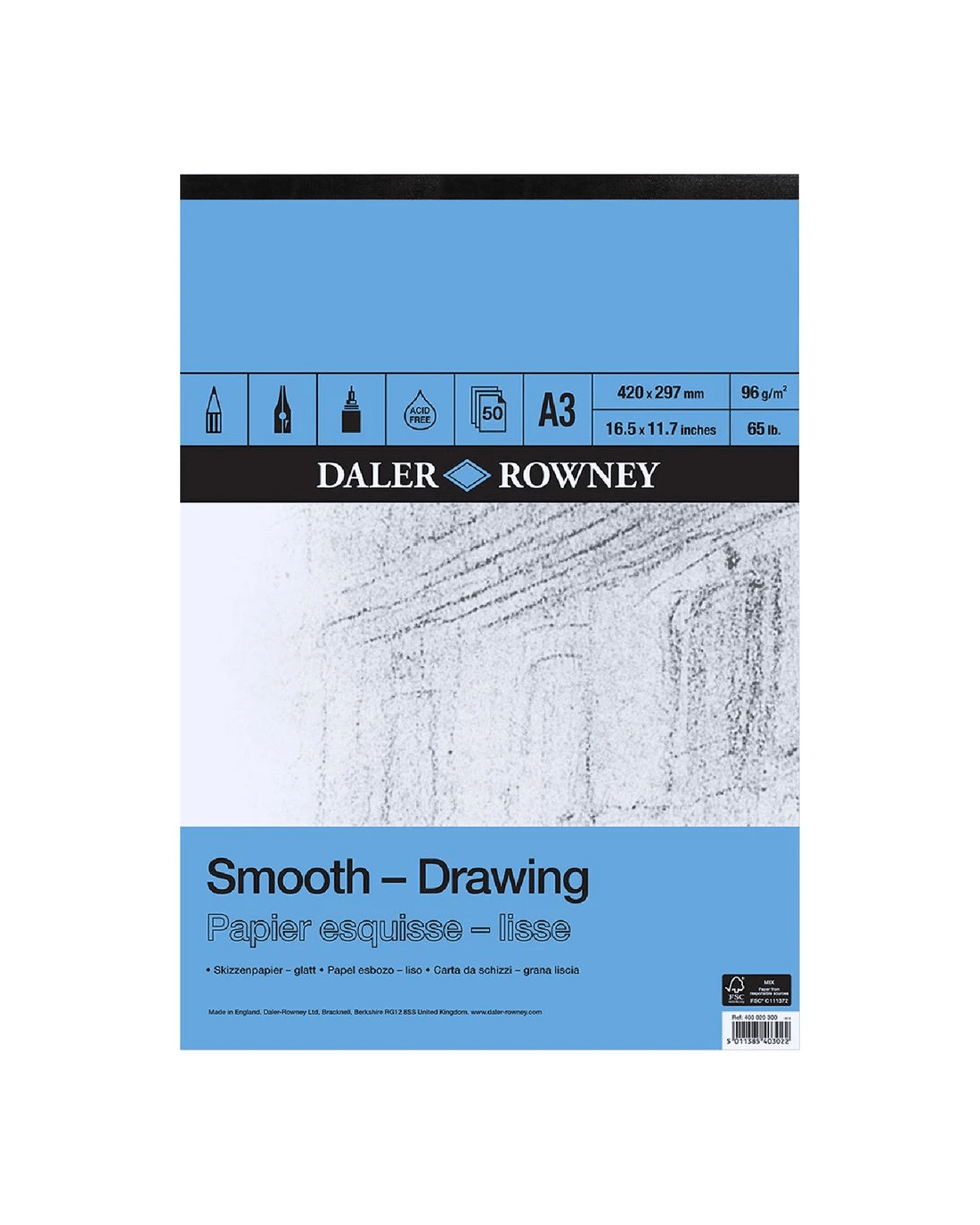 This Daler-Rowney Smooth Drawing Pad is perfect for students and more experienced artists alike. Each page has a smooth, natural white surface and is acid free so it won't react with your art supplies.