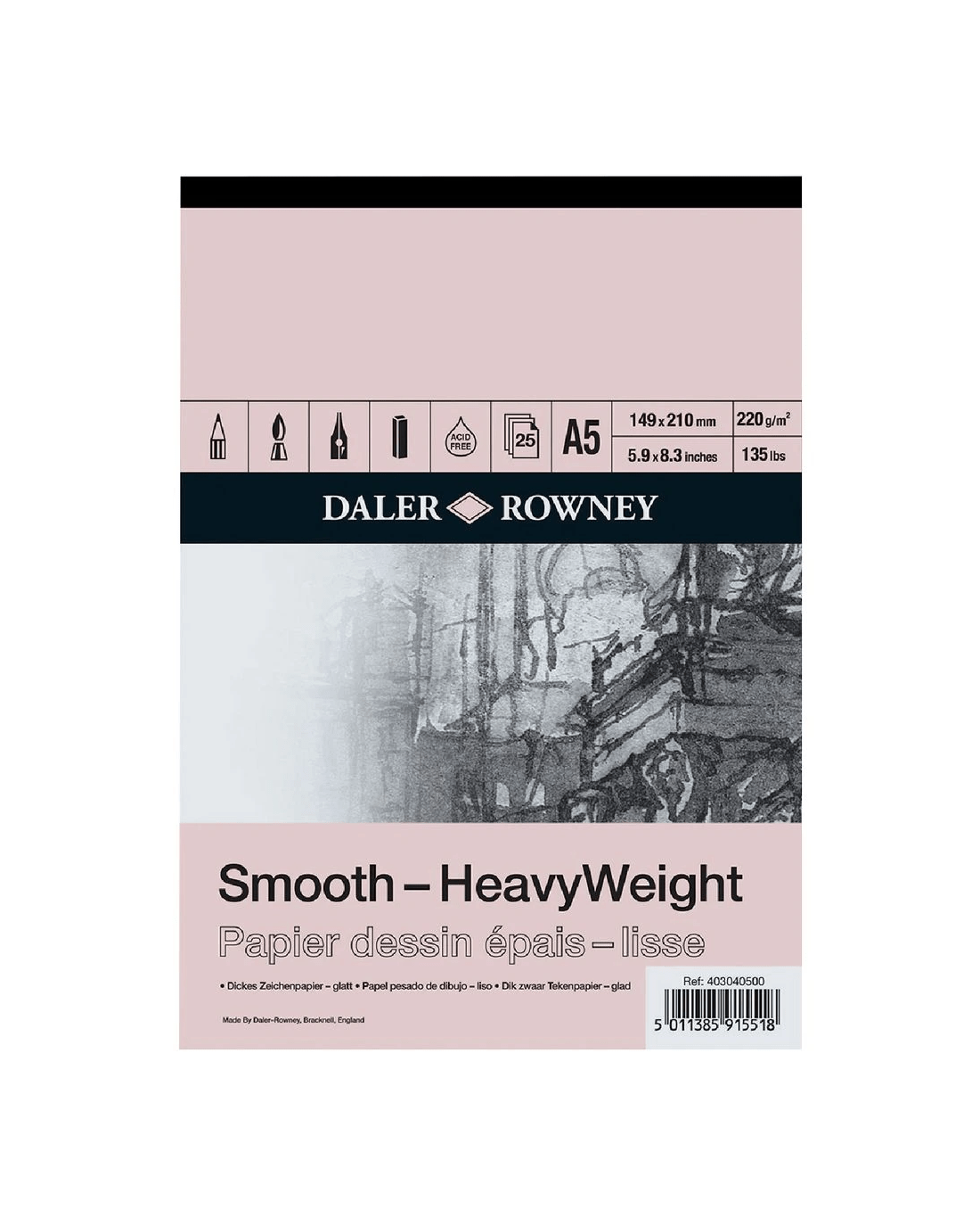 This Daler-Rowney Smooth Heavyweight Pad is perfect for students and more experienced artists alike. Each page has a thick, sturdy construction which will support light washes and mixed media techniques.