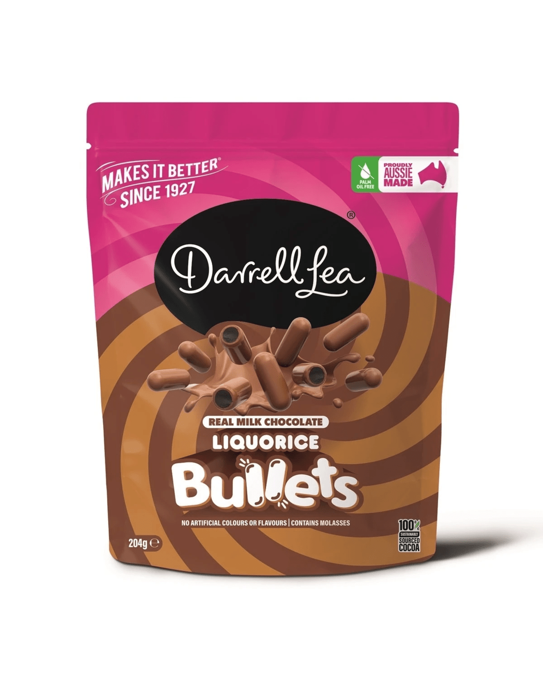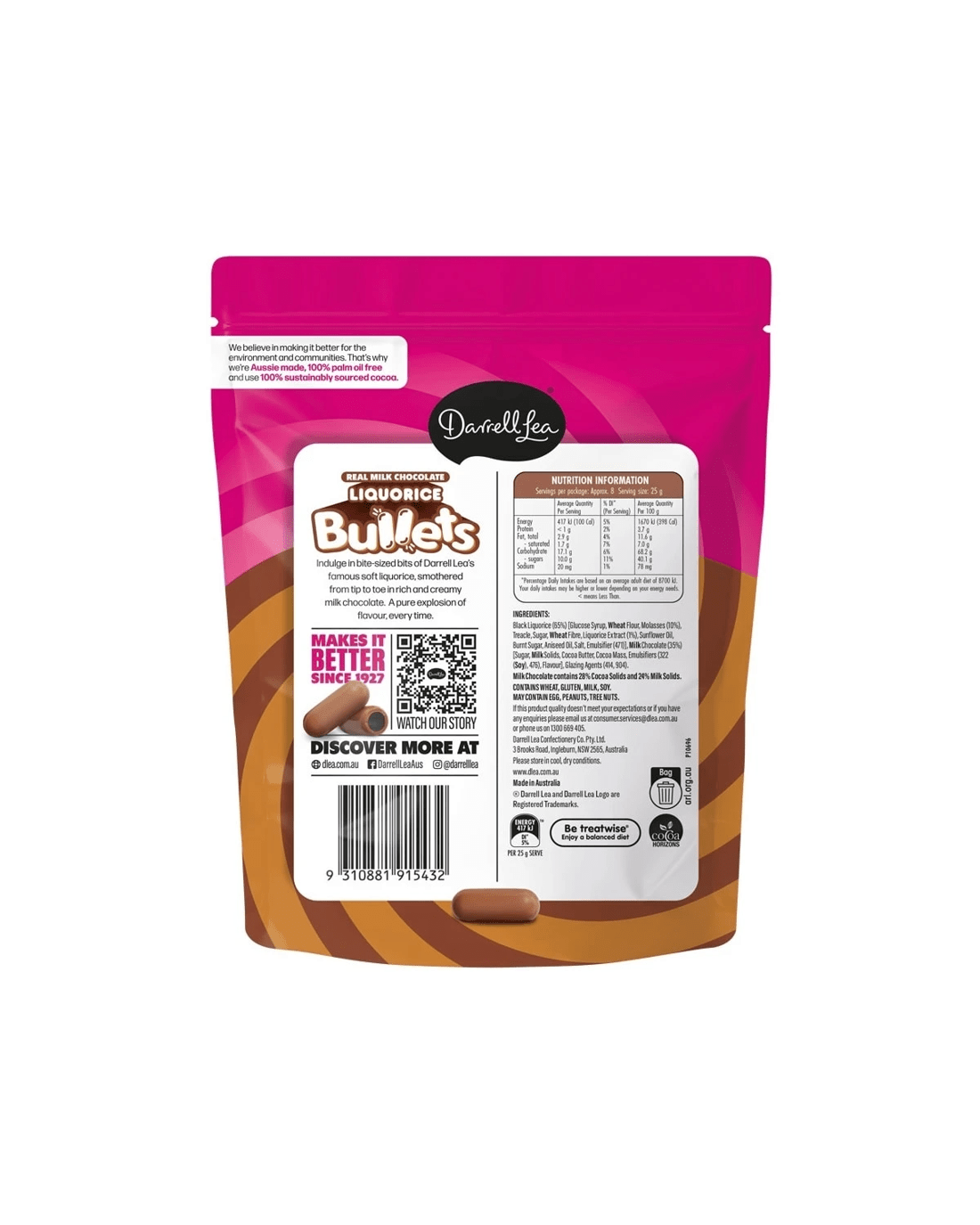 Indulge in bite-sized bits of Darrell Lea's famous soft liquorice, smothered from tip to toe in rich and creamy milk chocolate. A pure explosion of flavour, every time.