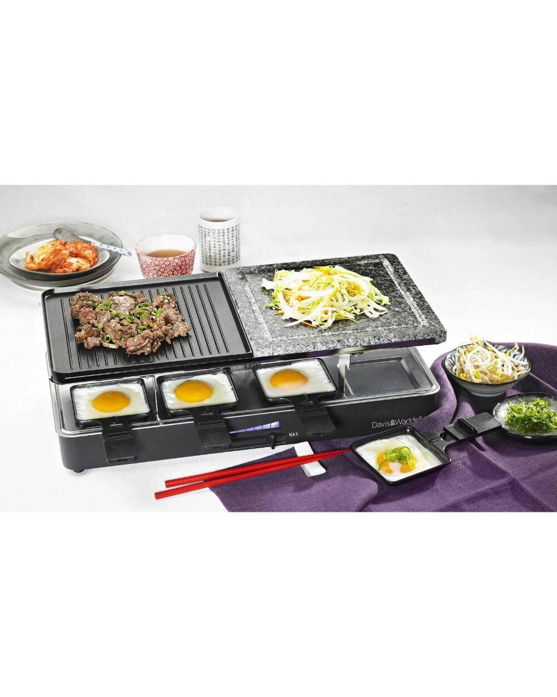 Perfect for social cooking, the Davis & Waddell Electric Party Grill brings people together with its 2-tier design: a non-stick grill plate and a natural stone top, all controlled via a convenient thermostat. It heats quickly and serves up to eight guests at once—ideal for raclette-style gatherings, tapas nights, or casual brunches.