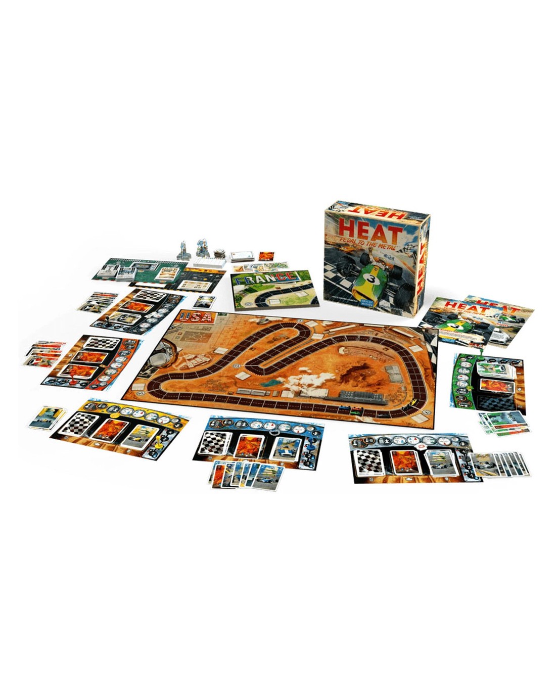 Based on simple and intuitive hand management, Heat: Pedal to the Metal puts players in the driver's seat of intense car races, jockeying for position to cross the finish line first, while managing their car's speed if they don't want to overheat. Selecting the right upgrades for their car will help them hug the curves and keep their engine cool enough to maintain top speeds. Ultimately, their driving skills will be the key to victory! Drivers can compete in a single race or use the "Championship System" to play a whole season in one game night, customizing their car before each race to claim the top spot of the podium. They have to be careful as the weather, road conditions, and events will change every race to spice up their championship. Players can also enjoy a solo mode with the Legends Module or add automated drivers as additional opponents in multiplayer games. Ages: 10+ | 1-6 Players | PLaytime: 30-60 min