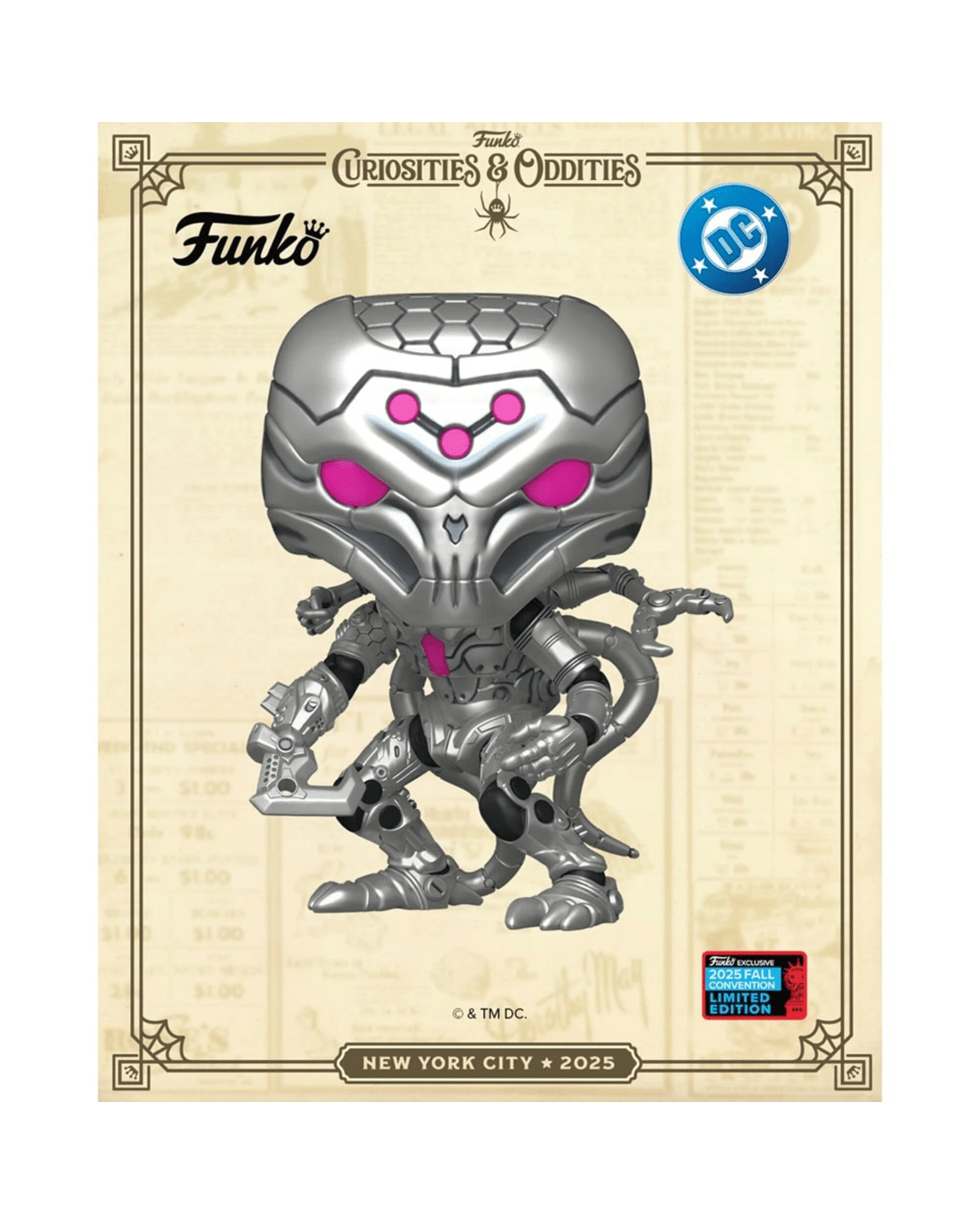 This NYCC 2025 Pop! Vinyl version of Brainiac delivers a bold metallic finish and intricate detail, capturing the alien intellect and menacing presence in every sculpted circuit and expression. Its a striking piece that embodies the high stakes of Supermans cosmic battles.