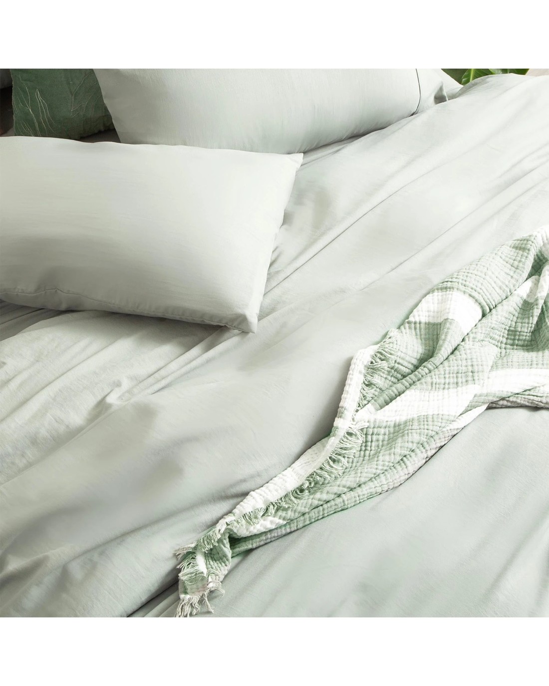 Ddecor Home Ultra Plush Vintage Washed Microfiber Quilt Cover Set — Sage (King) - Green