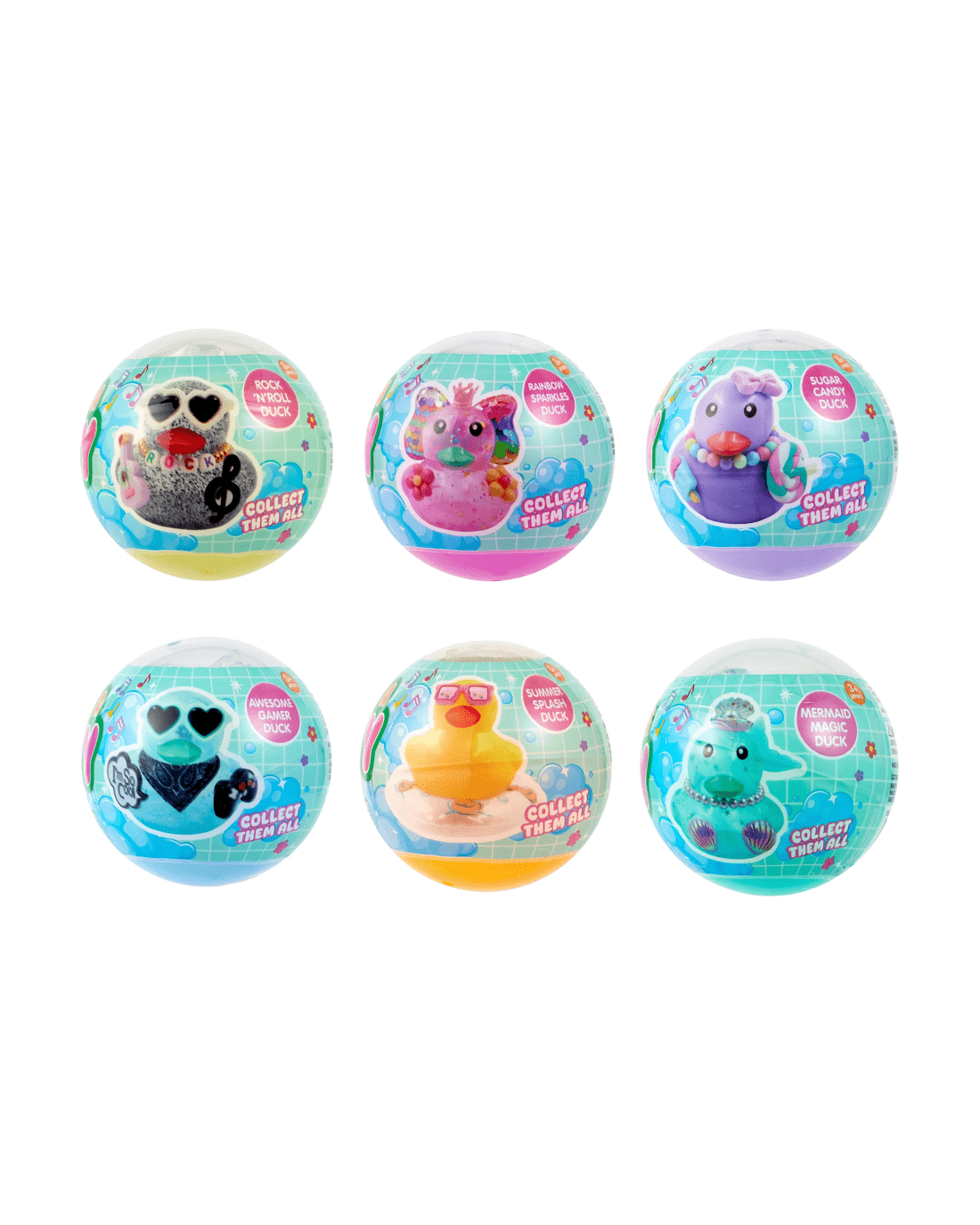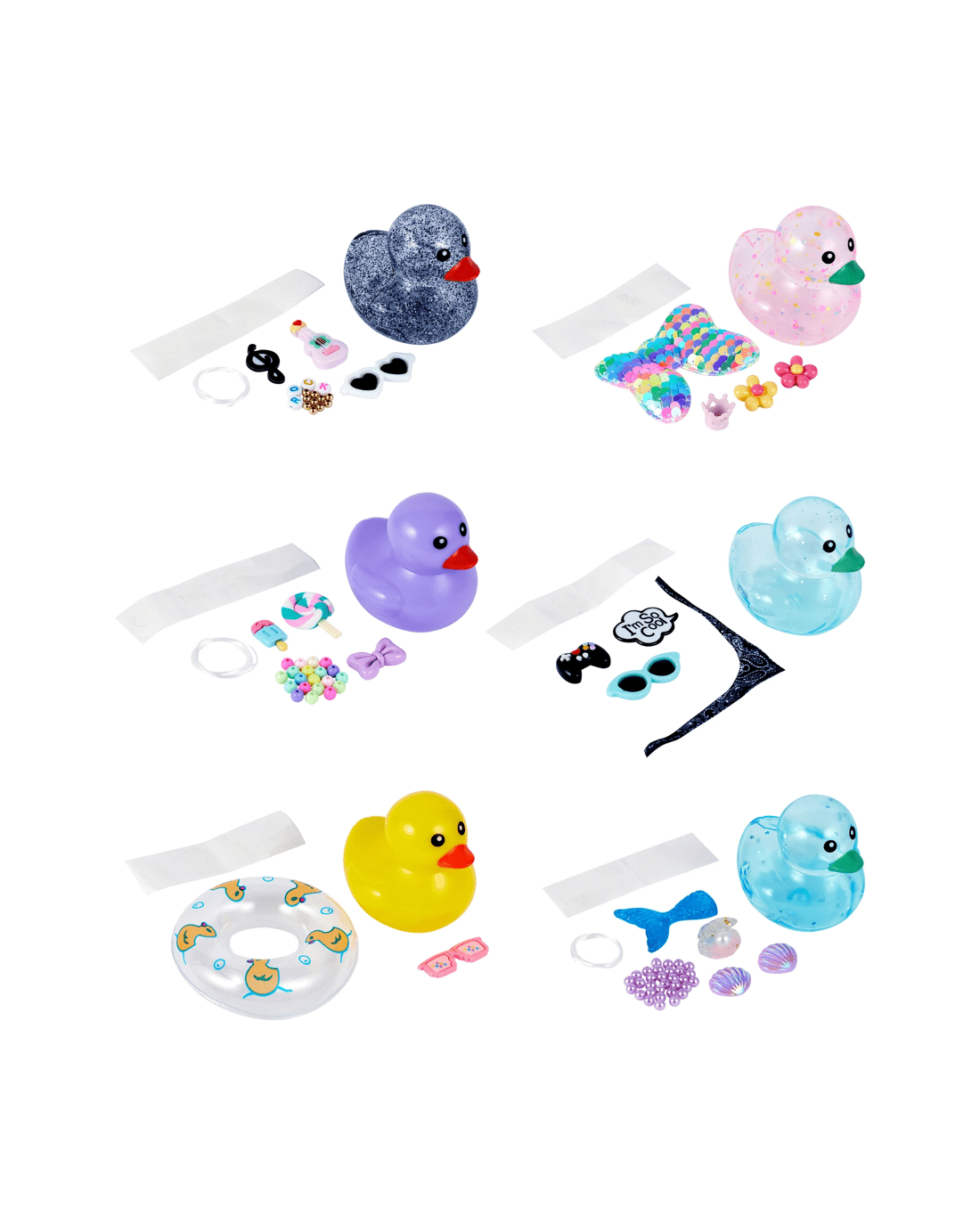 - Sugar candy duck, mermaid magic duck, rock 'n' roll duck, rainbow sparkles duck, awesome gamer duck or summer splash duck variants