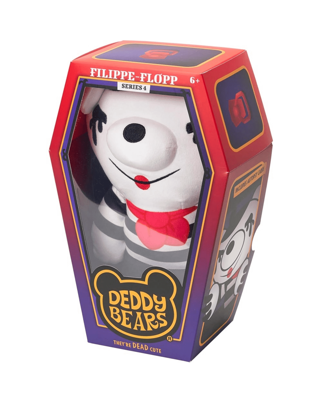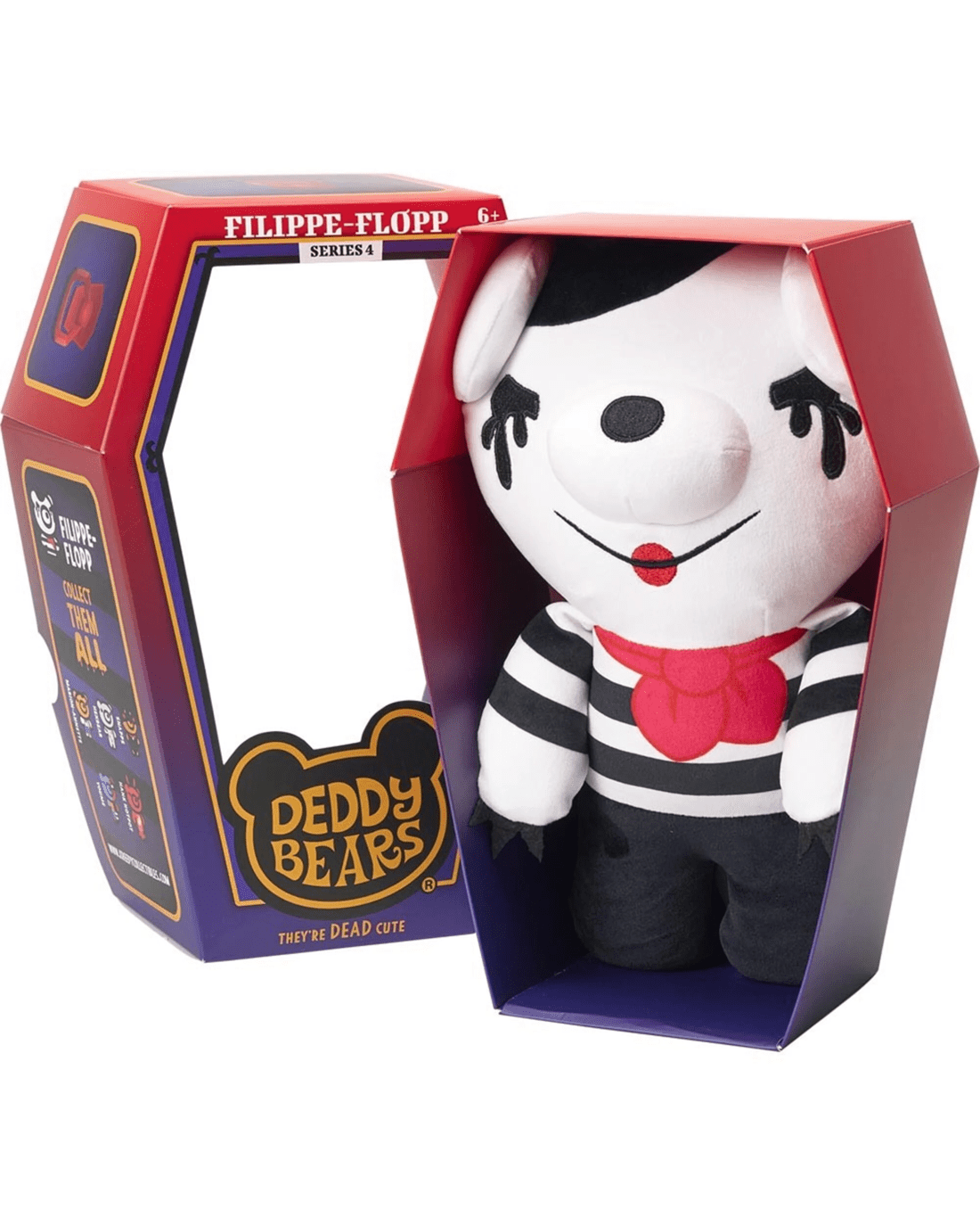 Comes packaged in a large, brightly coloured Deddy Bears coffin with a display window