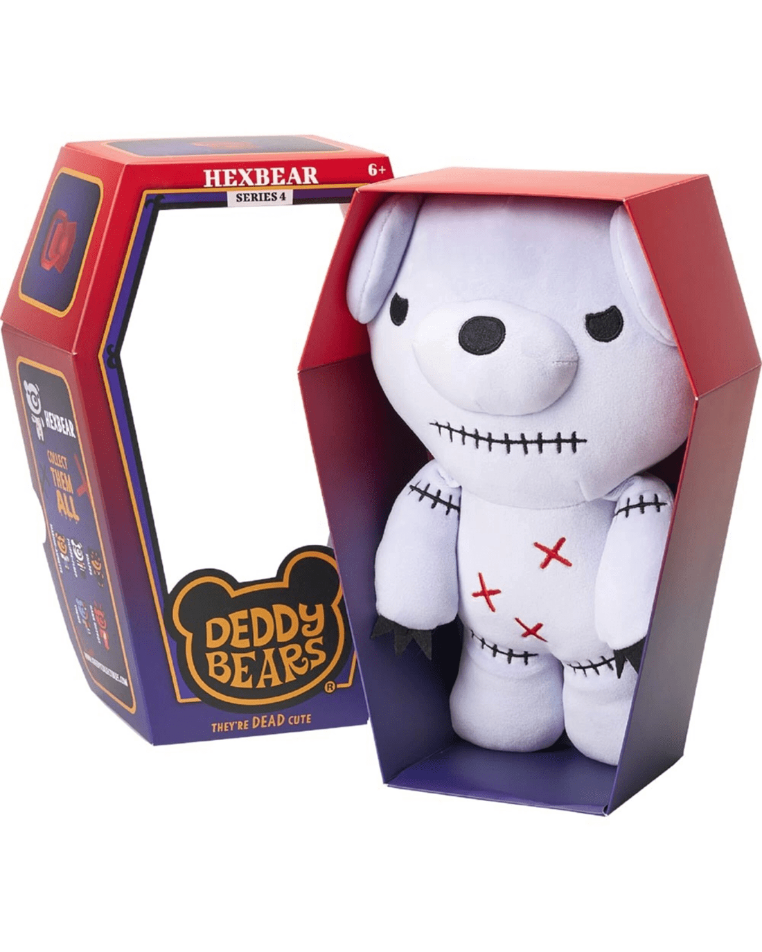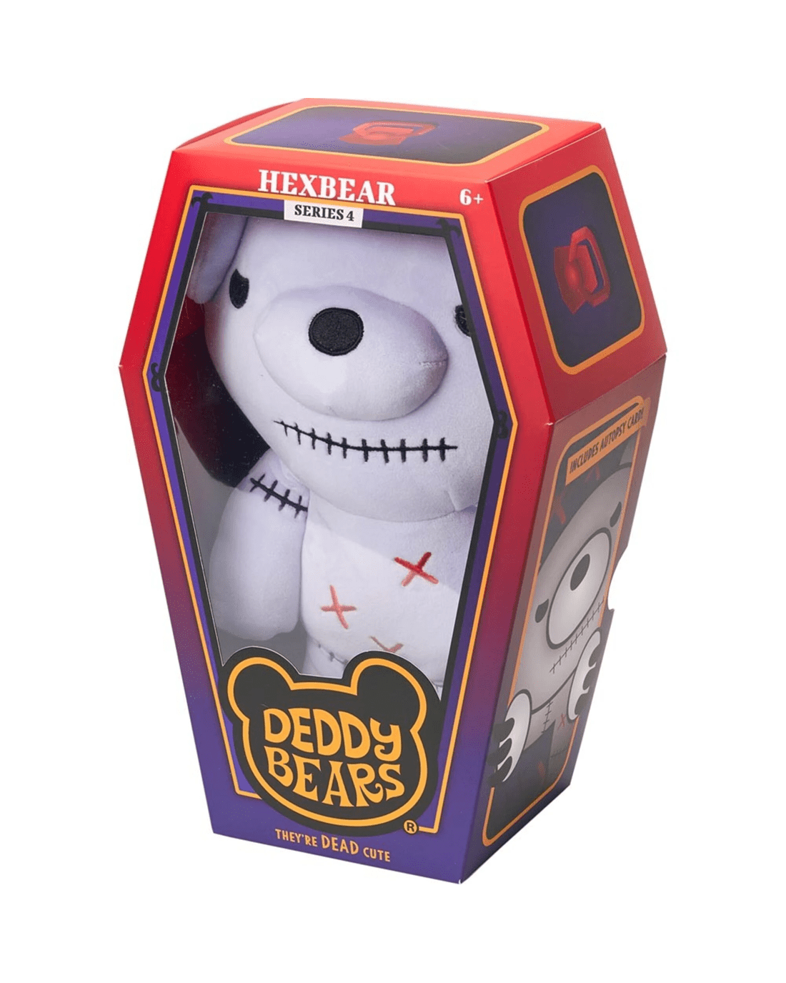 Comes packaged in a large, brightly coloured Deddy Bears coffin with a display window