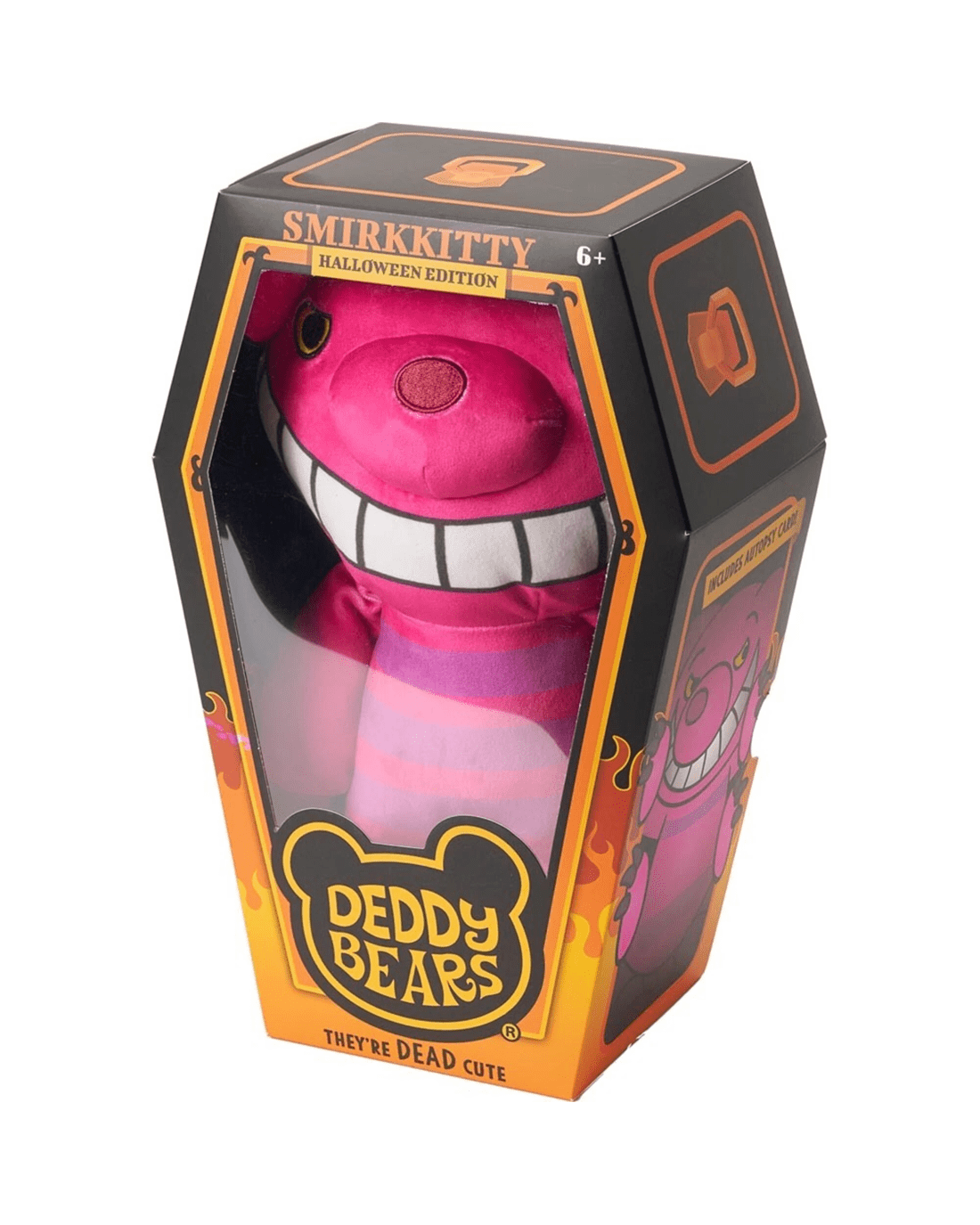 Comes packaged in a large, brightly coloured Deddy Bears coffin with a display window