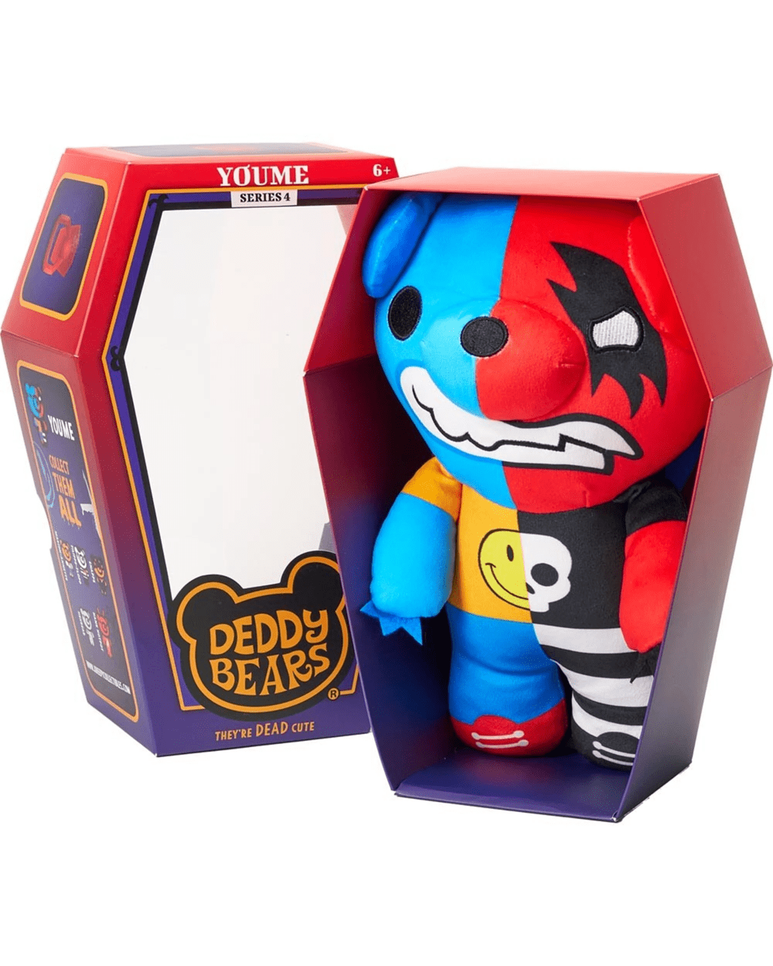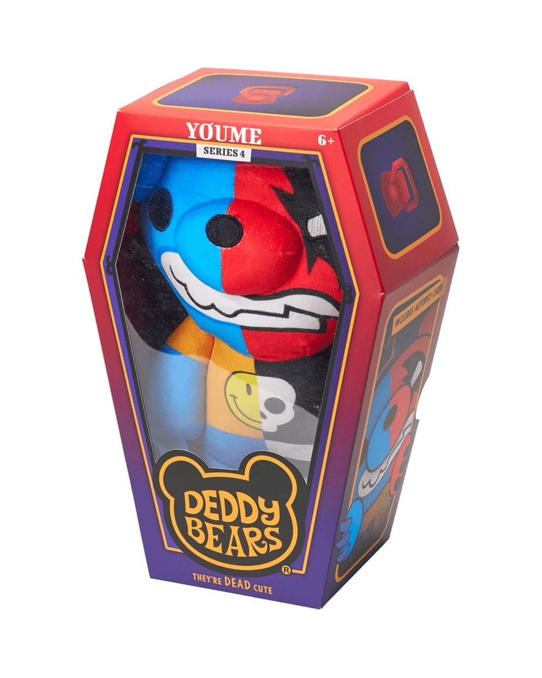 Comes packaged in a large, brightly coloured Deddy Bears coffin with a display window