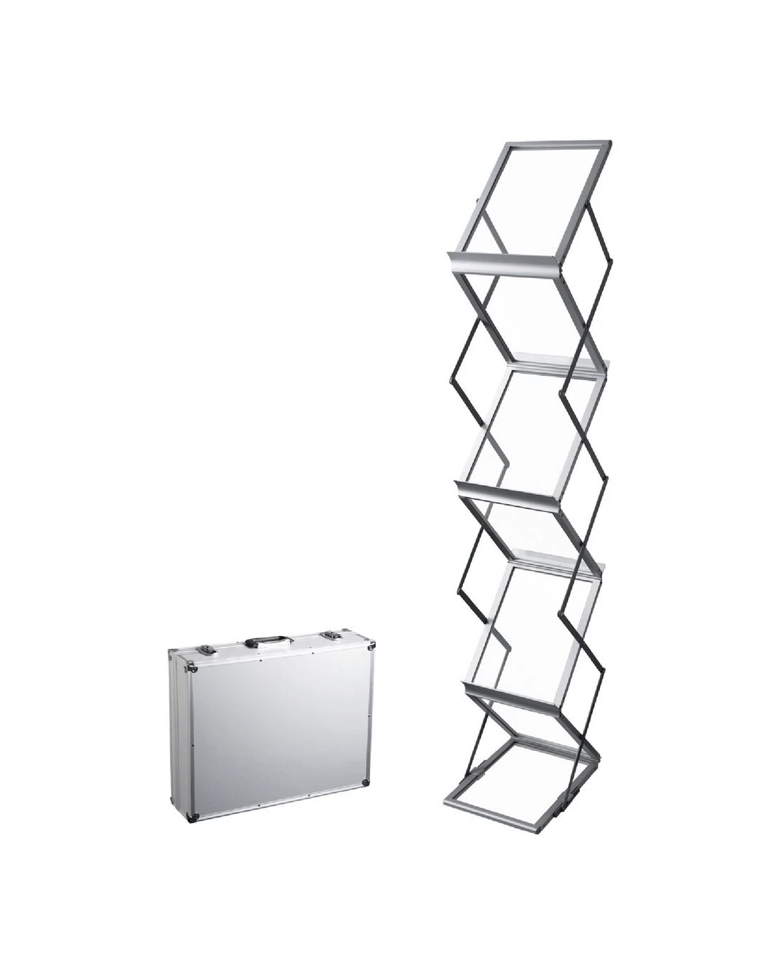 This Deflecto A4 Concertina Display Stand is a perfect and creative option for presenting brochures, magazines, flyers and more. It's ideal for exhibitions and tradeshows as it's been constructed using aluminium and acrylic making it portable and able to fold up. Plus, it comes with a handy aluminium case for easy transport and features 6 shelving compartments, making your display prominent and eye catching.