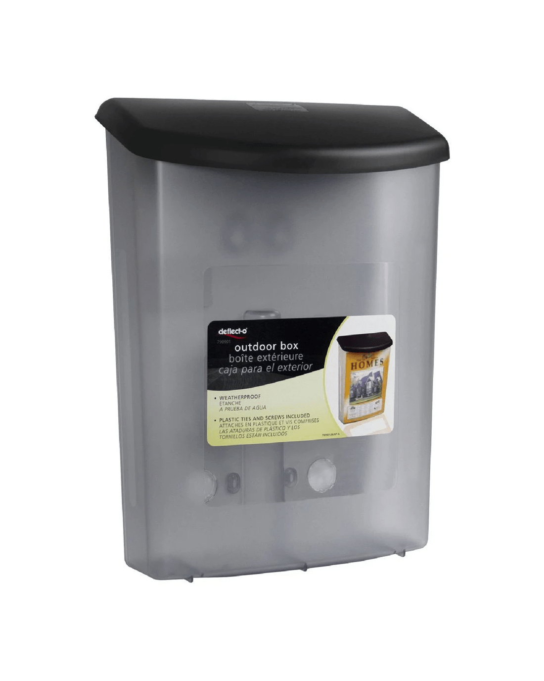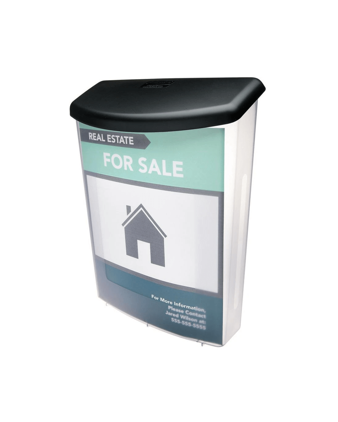 The Deflecto A4 Outdoor Brochure Holder is designed to be used outdoors and protect marketing and promotional materials from rain, wind, and sun. It is constructed from high impact polystyrene plastic for additional strength and durability with the black lid made from ABS plastic that provides further protection from the elements. Simply opening the lid allows for easy access to the materials inside.