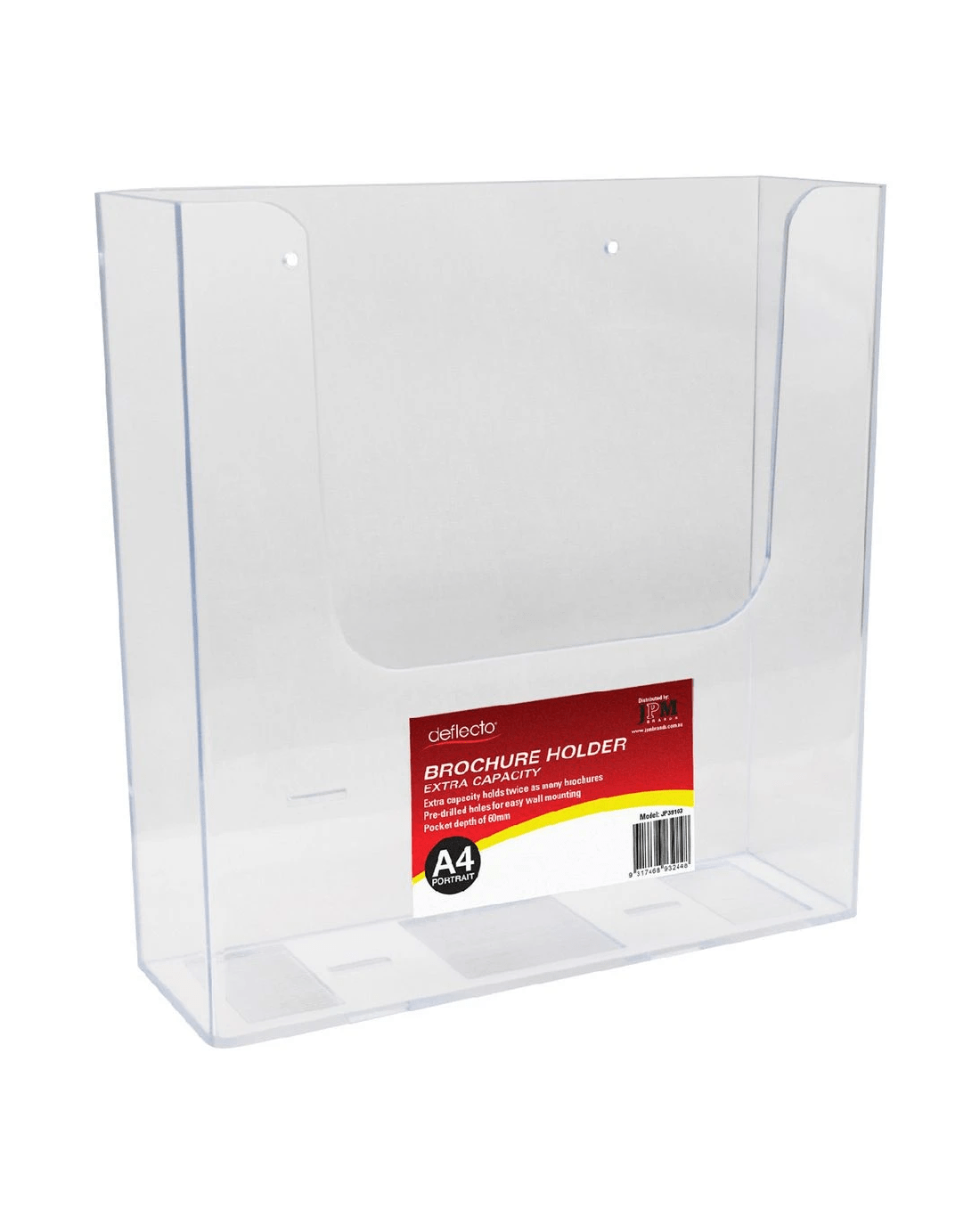 This Deflecto A4 Wall Mount Holder has a high capacity so you can display twice as many documents, brochures and more. This holder is designed for portrait A4 sized documents and is made from a durable plastic that's designed to be long lasting. It's wall mountable and has pre-drilled holes which makes it easier to install.