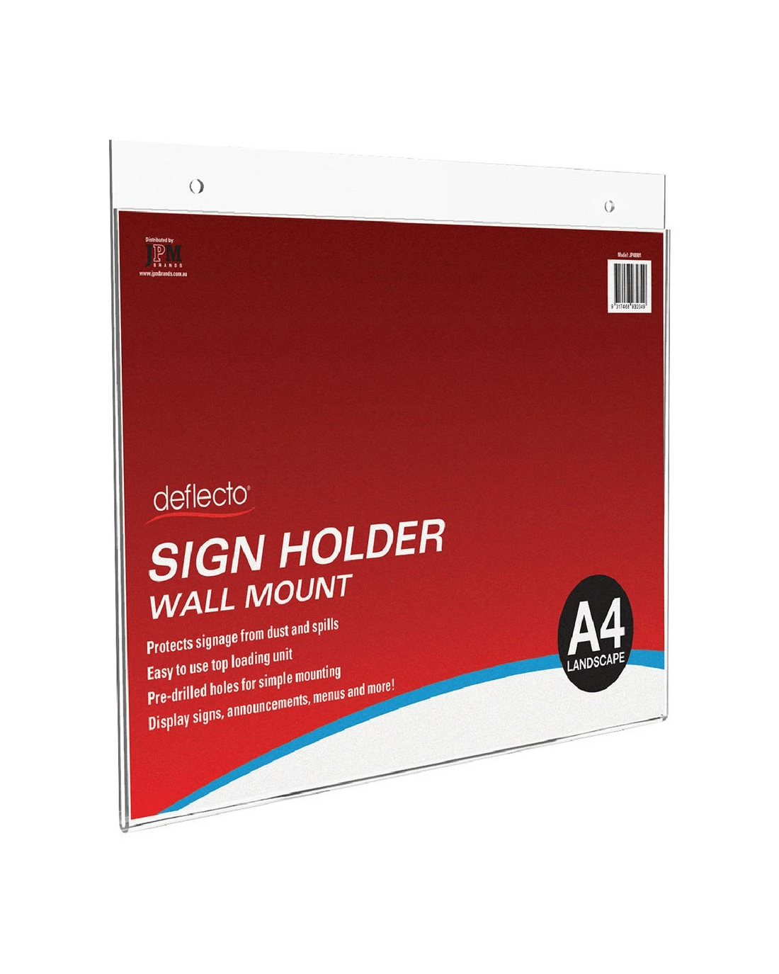 The Deflecto Wall Mount A4 Sign Holder is perfect for displaying signs, messages and other information at your business. This durable plastic sign holder comes with pre-drilled holes for easy wall mounting and can be loaded from the top or the side.