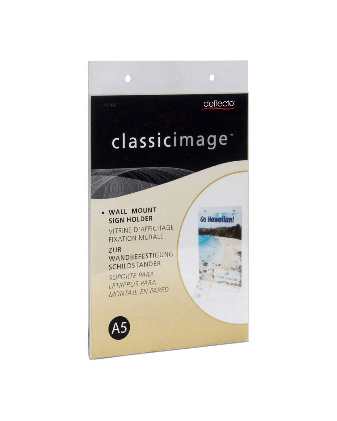 The Deflecto Wall Mount A5 Sign Holder is perfect for displaying signs, messages and other information at your business. This durable plastic sign holder comes with pre-drilled holes for easy wall mounting and can be loaded from the top or the side.