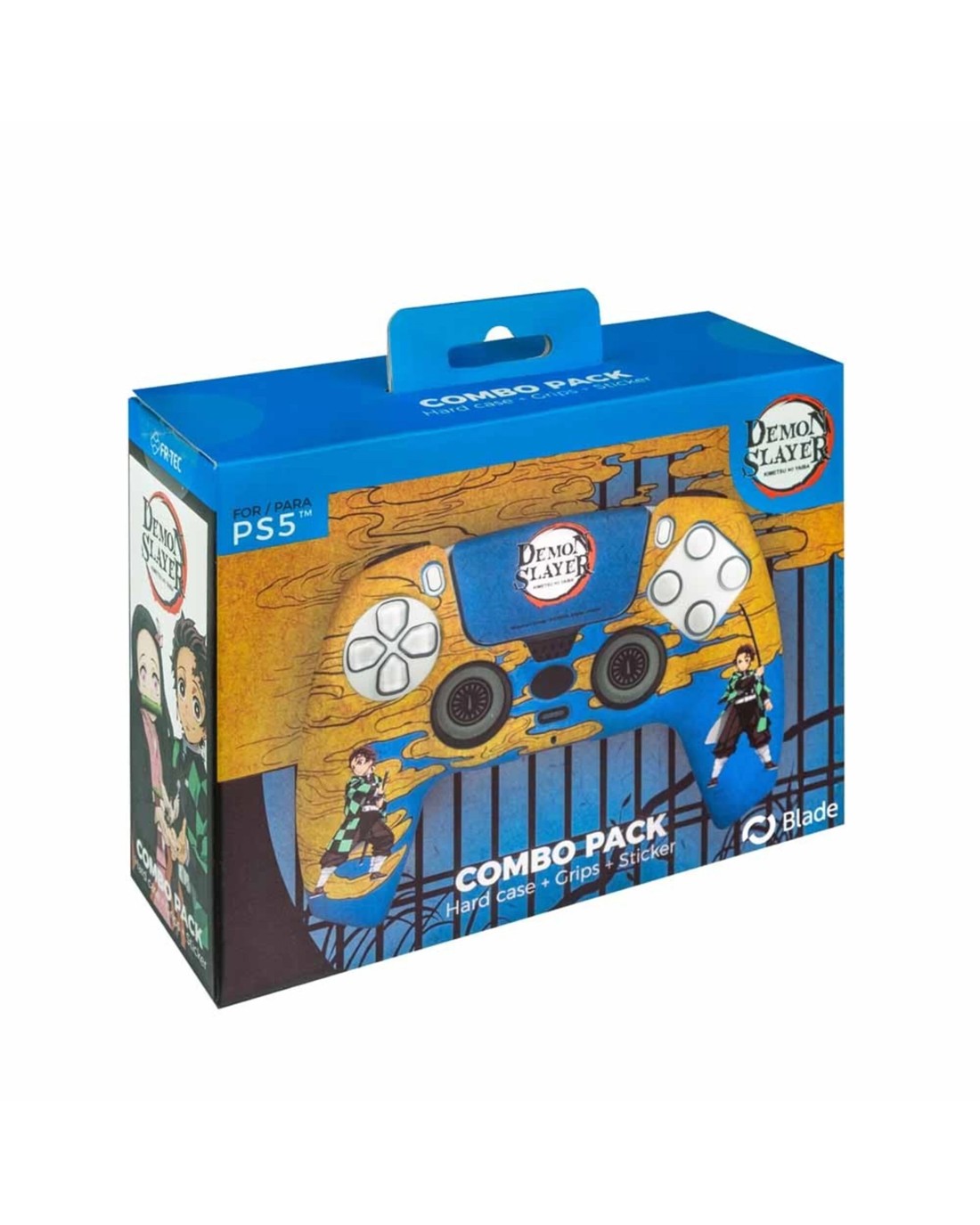Complete kit: Includes a hard case adorned with Kamado's fighting poses on both sides of the controller; grips shaped like the ring connected to Tanjiro's Nichirin sword; a sticker for the touchpad featuring the iconic and unmistakable Demon Slayer logo.