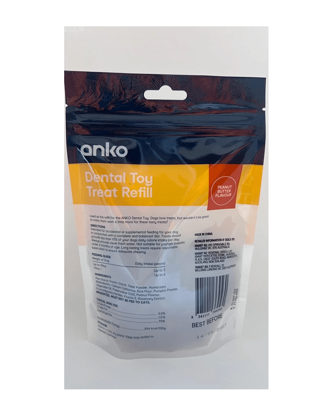 Used as the refill for the Anko Dental Chew Toys, SKU 43597208, 43597192, 43597178, 43597185.